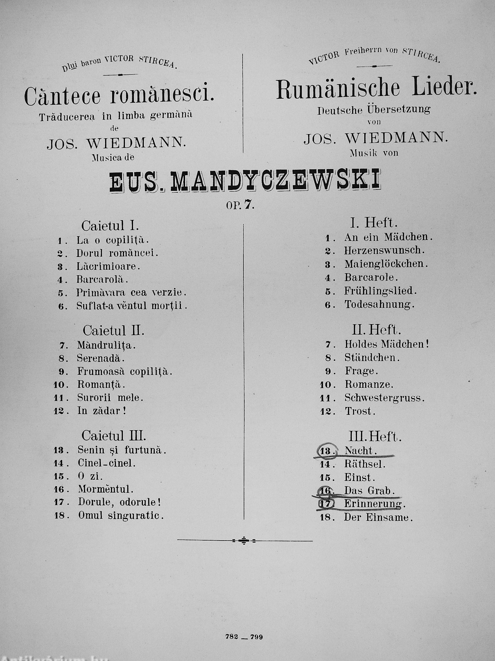 Zenéjét szerezte: Eus. Mandyczewski