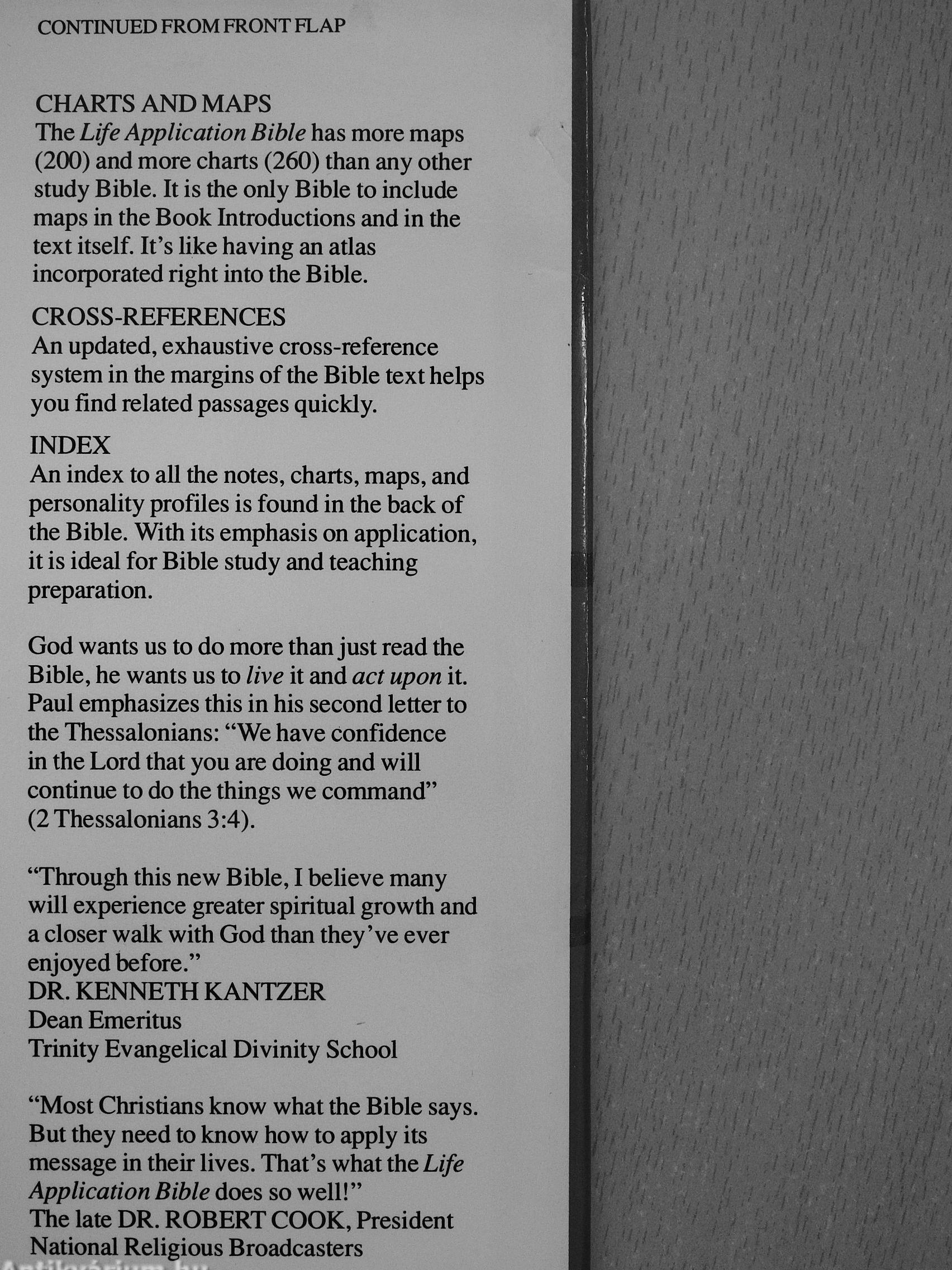 "Most Christians know what the Bible says. But they need to know how to apply its message in their lives. That's what the Life Application Bible does so well!" The late DR. ROBERT COOK, President National Religious Broadcasters