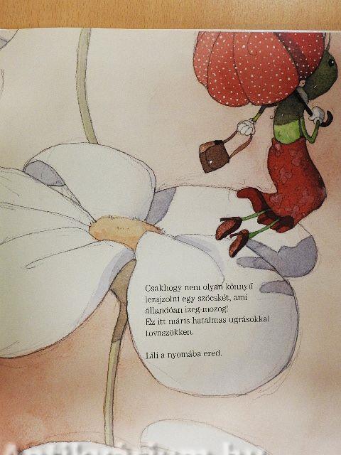 A szöcske azonban tovaszökken, Lili a nyomába ered, ám hamarosan szem elől téveszti.