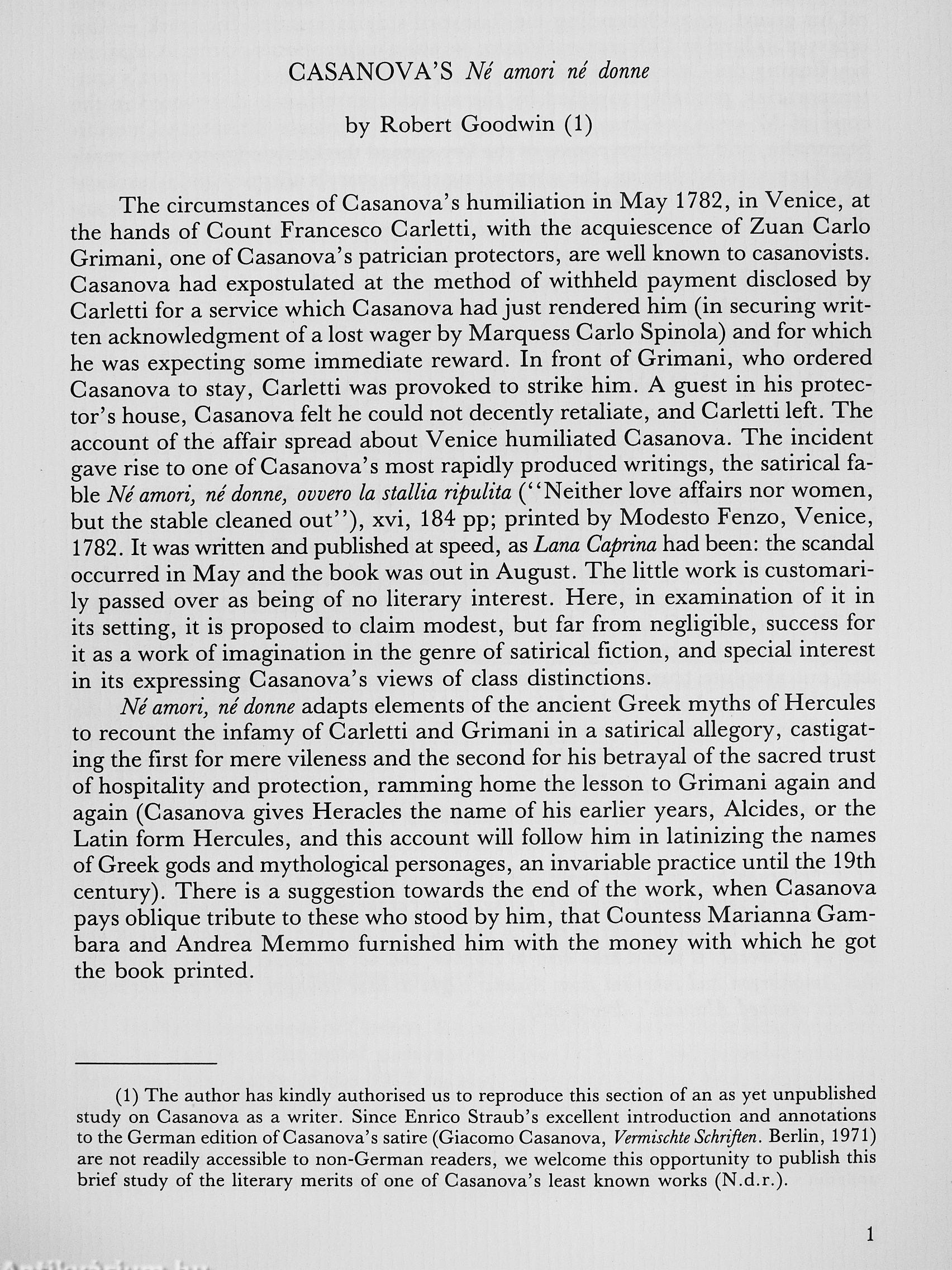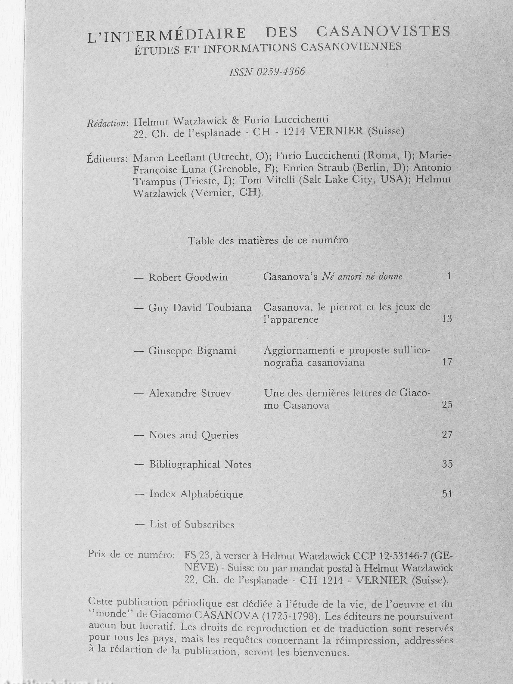 | Sorozatcím: | L'Intermédiaire des Casanovistes |