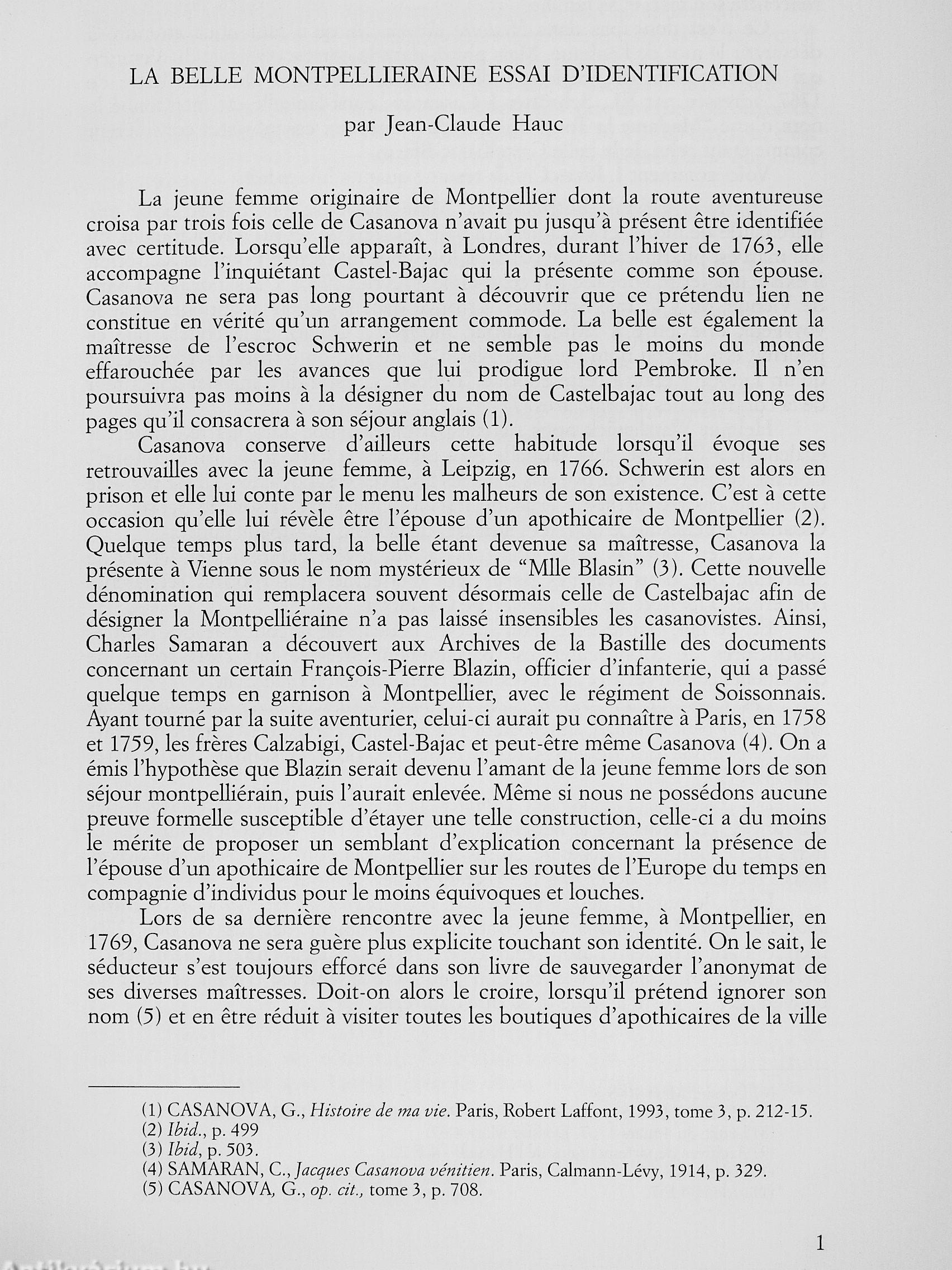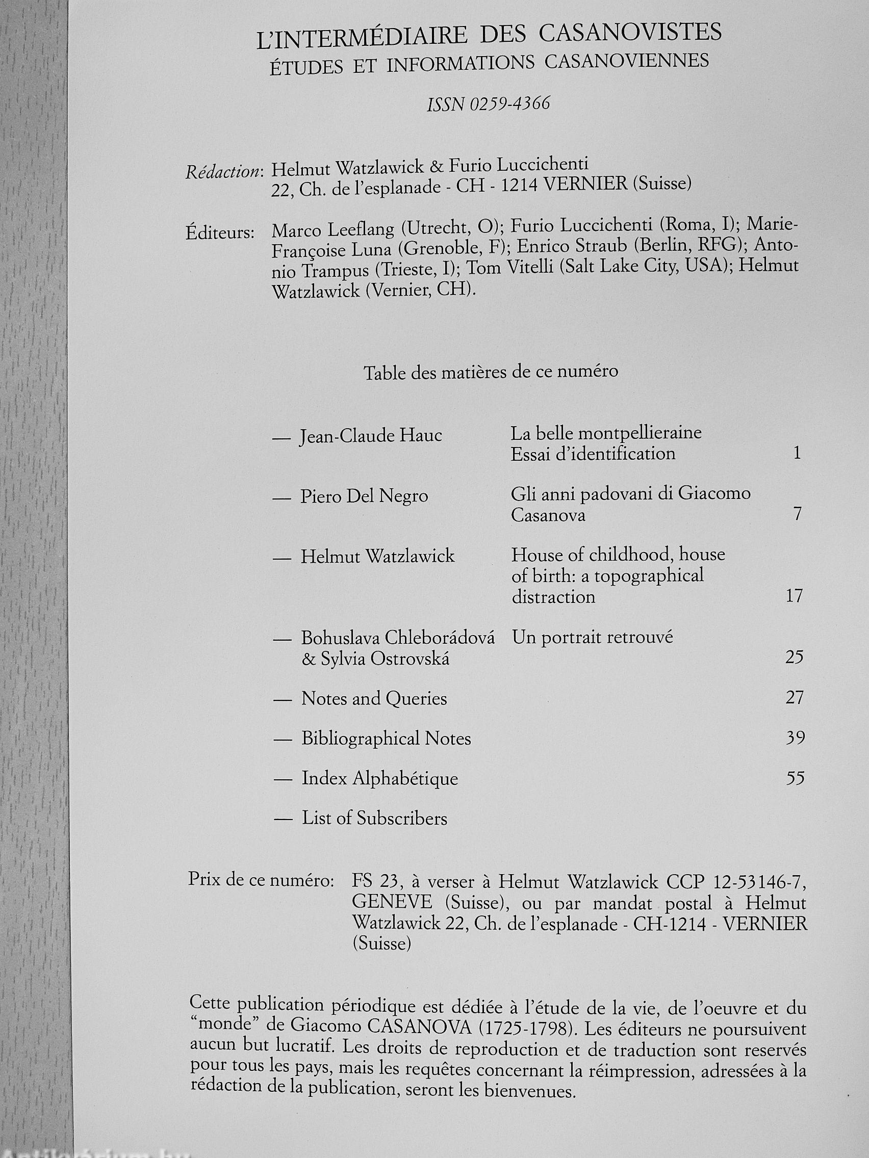 | Sorozatcím: | L'Intermédiaire des Casanovistes |