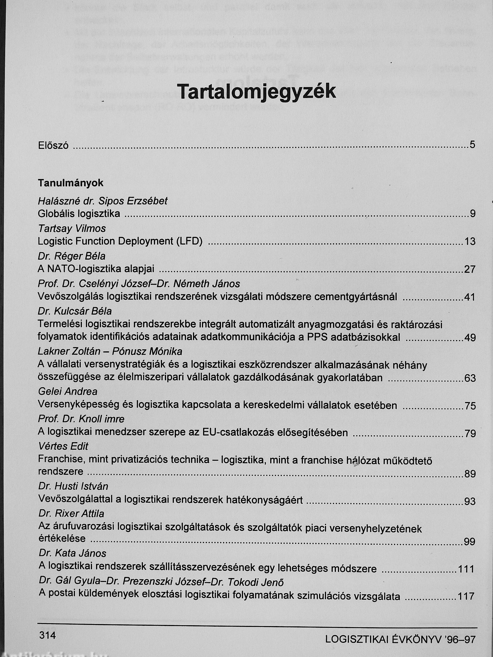 | Sorozatcím: | Logisztikai Évkönyv |
