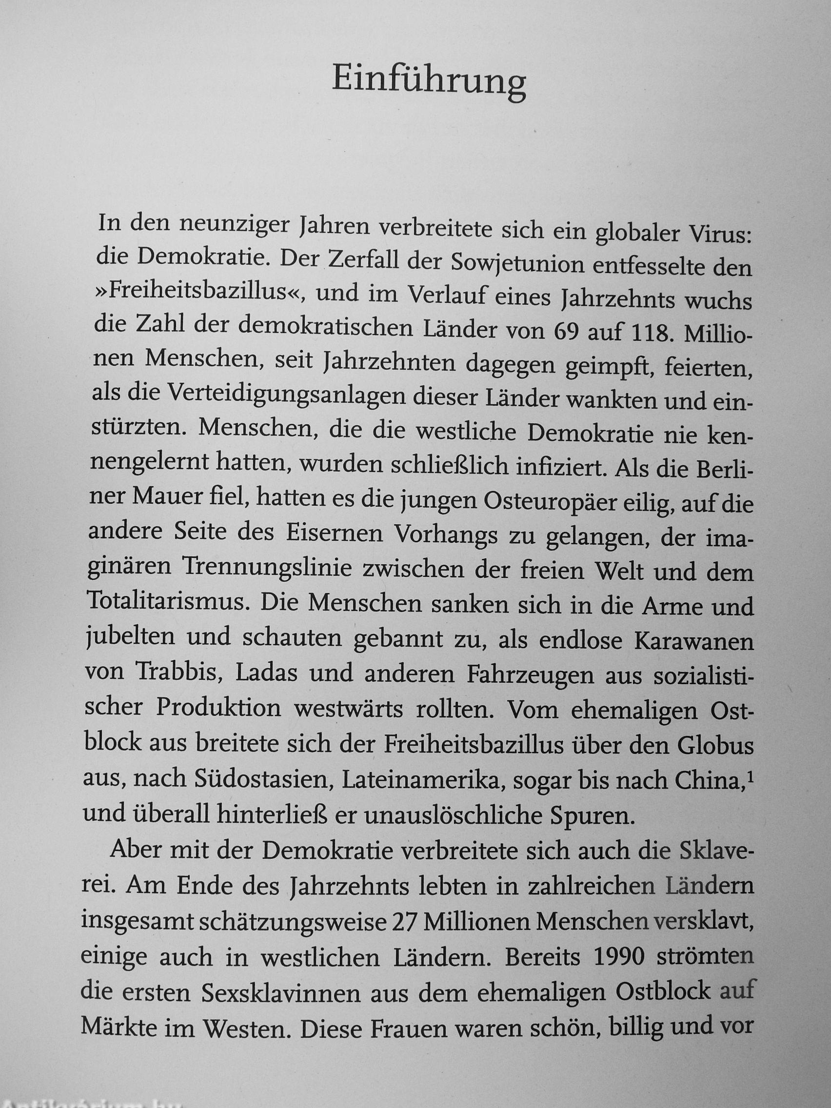 Im Jubel über den Fall der Berliner Mauer 1989 sah kaum jemand vorher, dass mit diesem welthistorischen Ereignis auch alle Schranken von Rücksicht, Anstand und Ethik fallen würden. Seit dem Zerfall der Sowjetunion organisiert z.B. die russische Mafia die Billig-Prostitution im Westen mit Tausenden verzweifelten Frauen, die in Osteuropa unter den Bedingungen des »freien Marktes« ihre Kinder noch weniger ernähren können als zu Zeiten kommunistischer Planwirtschaft. Nie zuvor hat sich in so kurzer Zeit eine so reiche und mächtige Kaste von »Oligarchen« herausgebildet, die ihren Hang zum Luxus auf Kosten der Ärmsten schamlos zur Schau stellen.