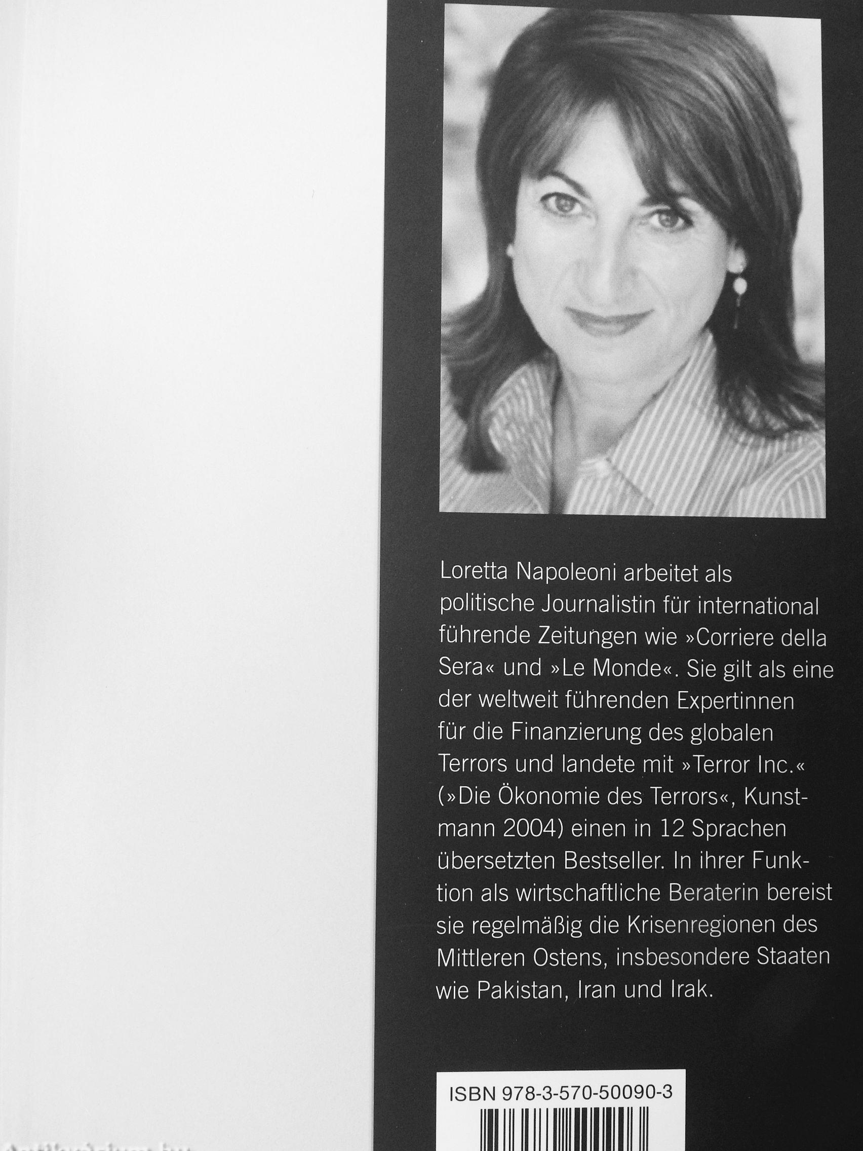 Loretta Napoleoni arbeitet als politische Journalistin für international führende Zeitungen wie »Corriere della Sera« und »Le Monde«. Sie gilt als eine der weltweit führenden Expertinnen für die Finanzierung des globalen Terrors und landete mit »Terror Inc.« (»Die Ökonomie des Terrors«, Kunstmann 2004) einen in 12 Sprachen übersetzten Bestseller. In ihrer Funktion als wirtschaftliche Beraterin bereist sie regelmäßig die Krisenregionen des Mittleren Ostens, insbesondere Staaten wie Pakistan, Iran und Irak.