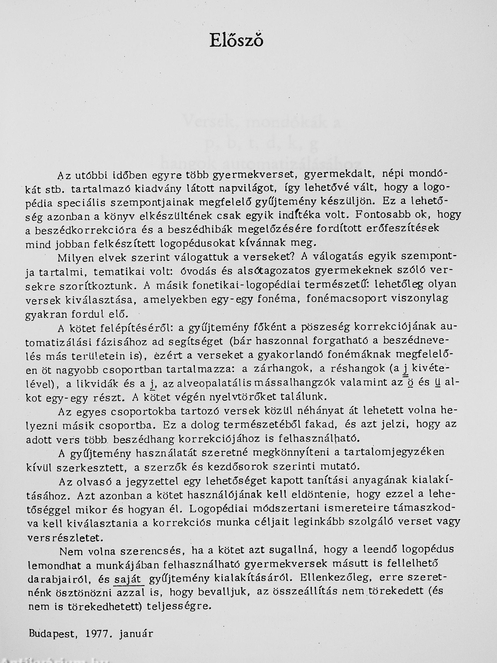 Gyermekvers- és mondókagyűjtemény a logopédiai munkához Gyermekvers- és mondókagyűjtemény a logopédiai munkához