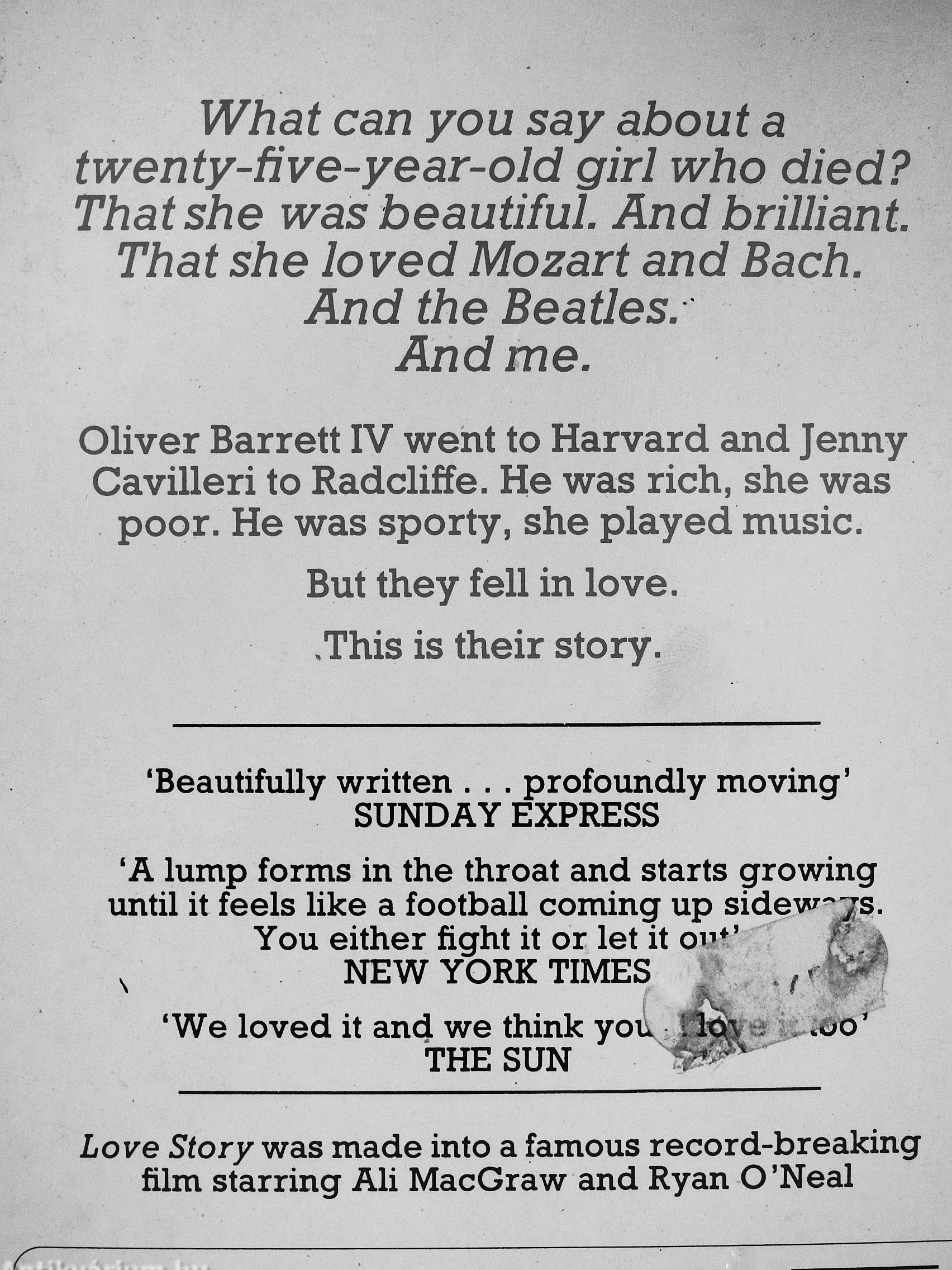 Oliver Barrett IV went to Harvard and Jenny Cavilleri to Radcliffe. He was rich, she was poor. He was sporty, she played music.
