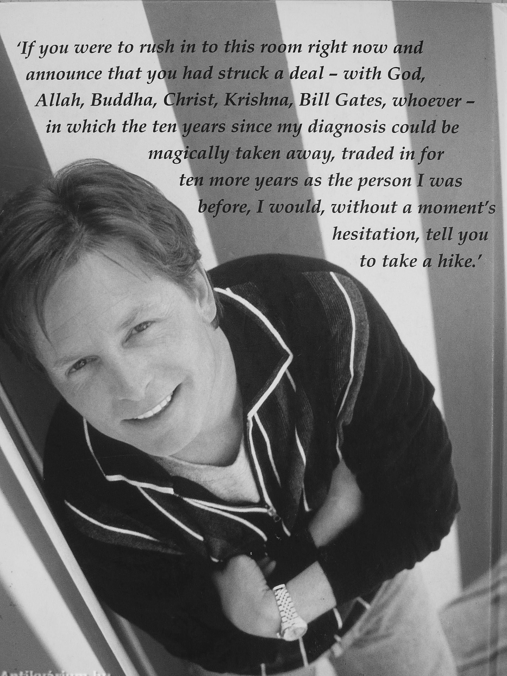 'If you were to rti^h in to this room right now and announce that ydu had struck a deal - with God, Allah, Buddha, Christ, Krishna, Bill Gates, whoever -in which the terC years since my diagnosis could he magically taken away, traded in for