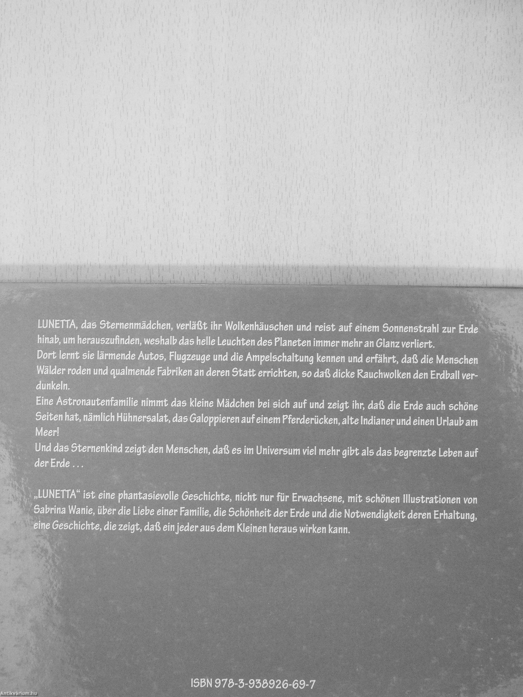 ' „LUNETTA" ist eine phantasievolle Geschichte, nicht nur für Erwachsene, mit schönen Illustrationen von ' Sabrina Wanie, über die Liebe einer Familie, die Schönheit der Erde und die Notwendigkeit deren Erhaltung, eine Geschichte, die zeigt, daß ein... Tovább