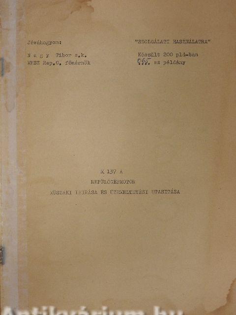 M 137 A Repülőgépmotor műszaki leírása és üzemeltetési utasítása