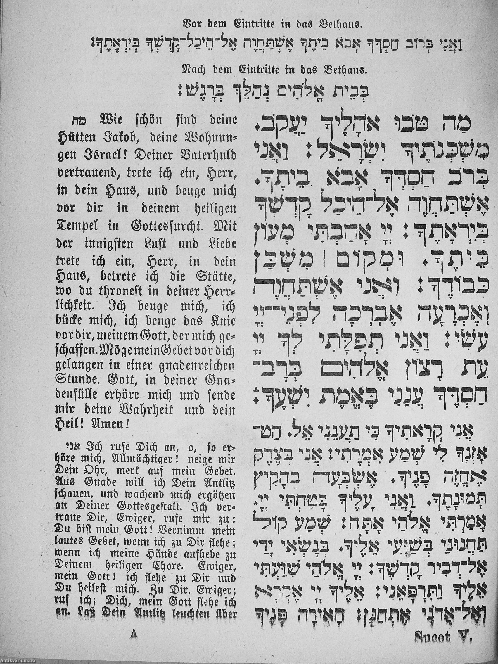 Die sämmtlichen Festgebete der Israeliten mit bestgeordnetem Texte und deutscher Uebersetzung nach den vorzüglichsten Autoren gesammelt/Für den 1. und 2. Tag Laubhüttenfestes
