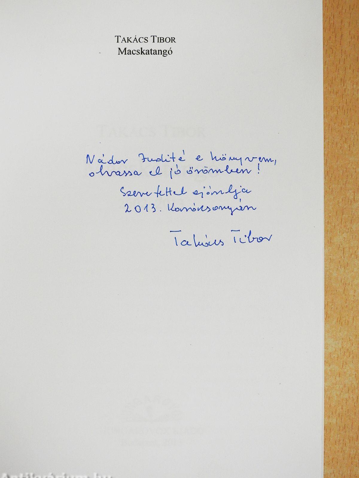 | Megjegyzés: | Takács Tibor szerző által dedikált példány. |