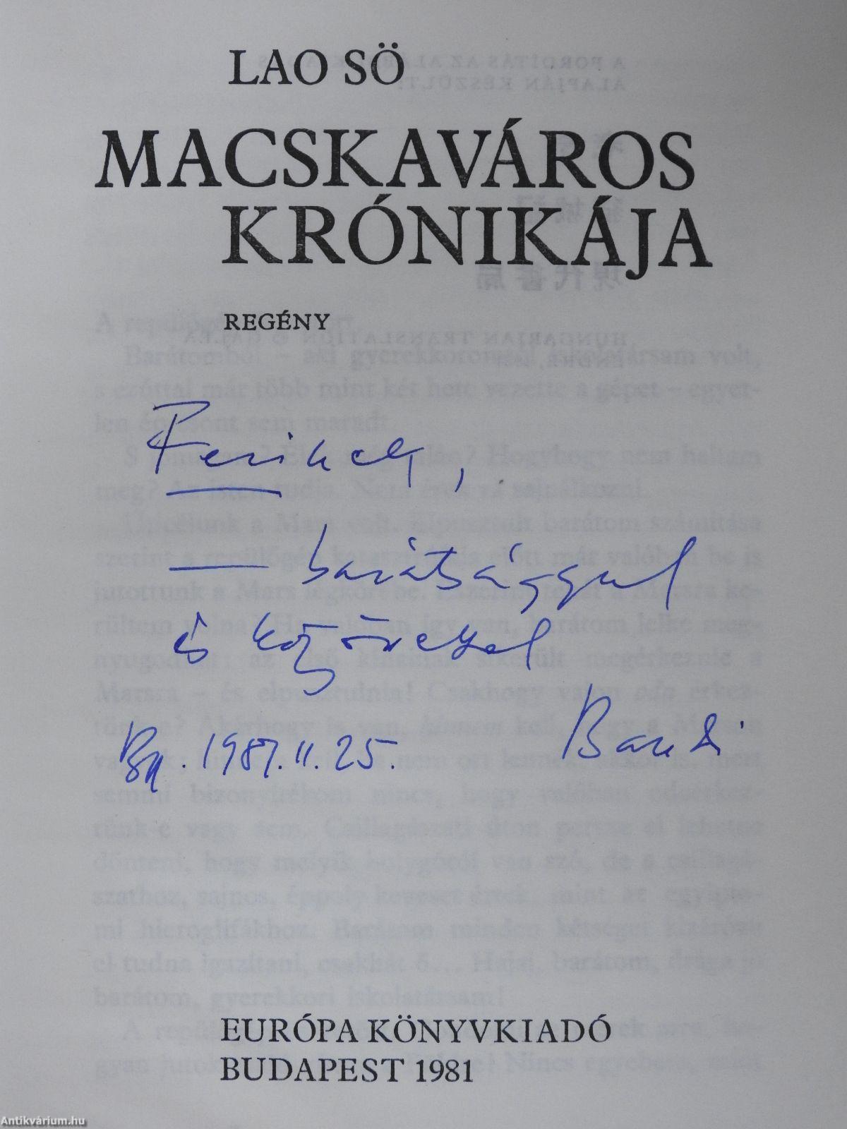 | Megjegyzés: | Galla Endre fordító által dedikált példány. A könyv egész oldalas, fekete-fehér illusztrációkat tartalmaz. |