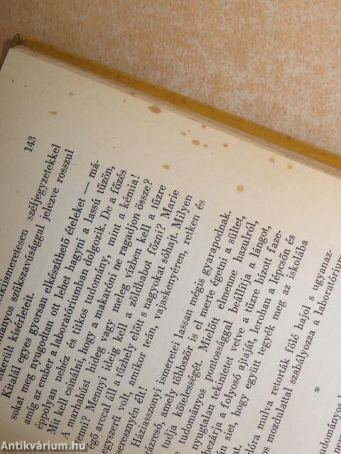 Felejthetetlen élmény, nagyszerű emberi dokumentum ez a könyv! Kalandregénynél izgalmasabb és páratlanul hiteles életrajza a Nobel-díjas Madame Curie-nek. Arról szól, hogyan áldozza egy zseniális asszony életét a tudománynak, hogyan jut el egy egész világszemléletet átalakító fölfedezéshez, az aranynál negyvenezerszer drágább rádiumnak a kultúra szolgálatába állításáig, s hogyan marad meg mindezek mellett szerető hitvesnek, gondos anyának, hogy vezeti háztartását, hogy szorgoskodik kertjében, hogy gyászolja férjét, aki egy közlekedési balesetben veszti életét, s hogy vállalja egyedül is közös munkájuk folytatását. És arról, hogy áll ez a nagy egyéniség a világháború alatt az emberi nyomorúság enyhítésének szolgálatába. Leánya, Eve Curie, a gyermek szeretetével és a kutató lelkiismeretességével írta meg ennek a példás életnek a lebilincselő történetét, naplók, levelek és közvetlen tapasztalatok alapján. A tudomány évszázadának kimagasló alakja Madame Curie, s Eve Curie munkája mindenben méltó az ő megkapó életéhez és nagyszerű egyéniségéhez.