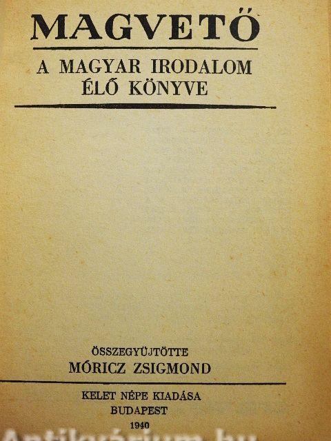 Megjegyzés: Ezt a gyűjteményt 1940. évben hordta össze Móricz Zsigmond írók és kiadók lelkes támogatásával. Ez a könyv készült a Pesti Lloyd nyomdában a könyvnyomtatás feltalálása 500-ik esztendejében, Dr Móricz Miklós igazgatása alatt. A borítékon a Magvető rajzát írta Medgyessy Ferenc, a címbetűket rajzolta Fery Antal.