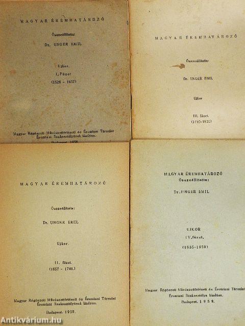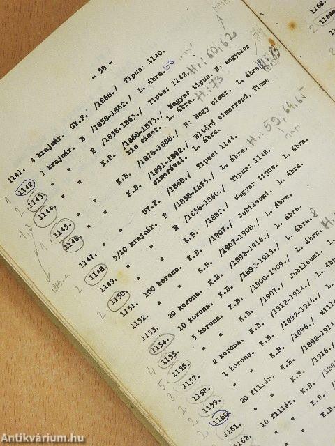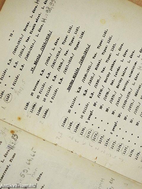 | Megjegyzés: | Minden füzetben több mint húsz oldalnyi fekete-fehér ábra található az érmekről. Az első két füzet kiadási éve 1958. Az I., III. és IV. füzet 500, a második füzet 200 példányban jelent meg. |