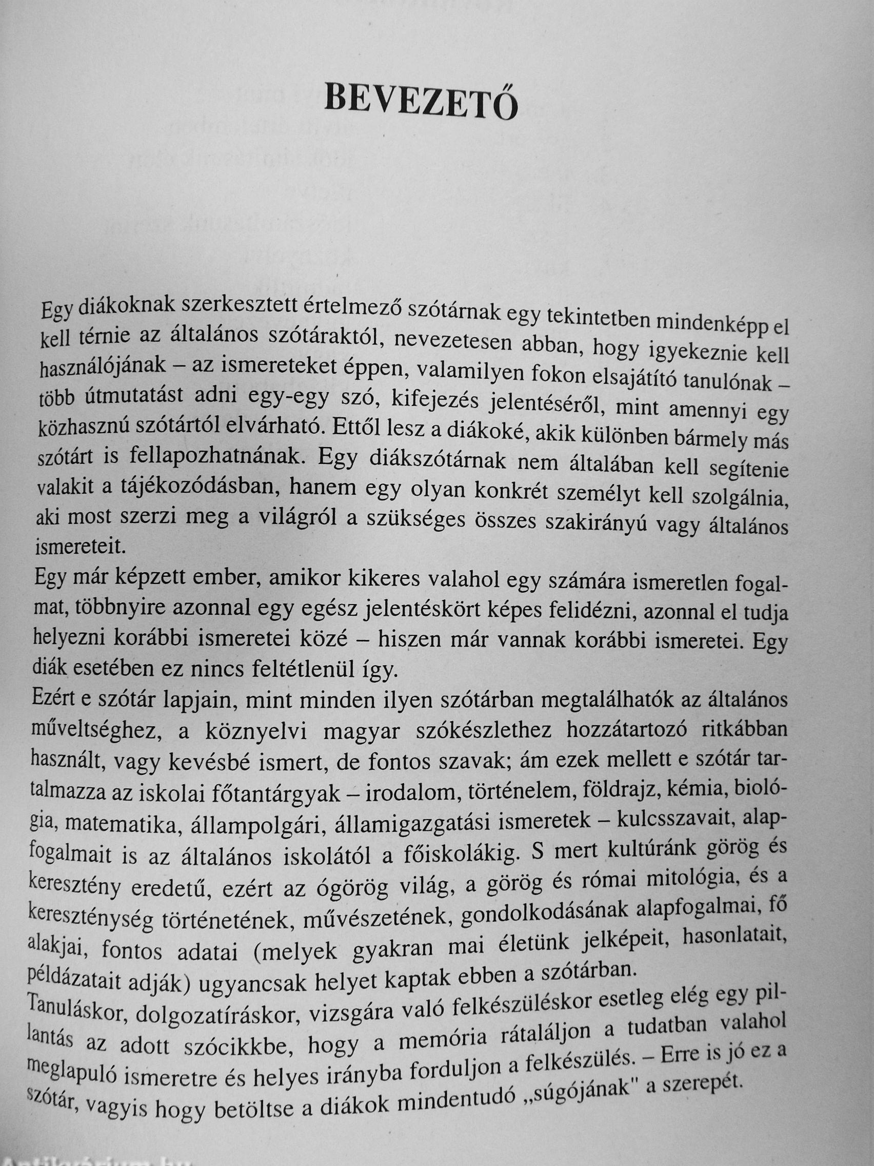 Tanuláskor, dolgozatíráskor, vizsgára való felkészüléskor esetleg elég eg)' pillantás az adott szócikkbe, hogy a memória rátaláljon a tudatban valahol meglapuló ismeretre és helyes irányba forduljon a felkészülés. Erre is jó ez , szóicti, ogy betöltse a diákok mindentudó „stigójának" a szerepét.