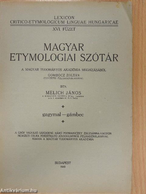 Magyar etymologiai szótár XVI. (töredék) Magyar etymologiai szótár XVI. (töredék) Magyar etymologiai szótár XVI. (töredék) Magyar etymologiai szótár XVI. (töredék)