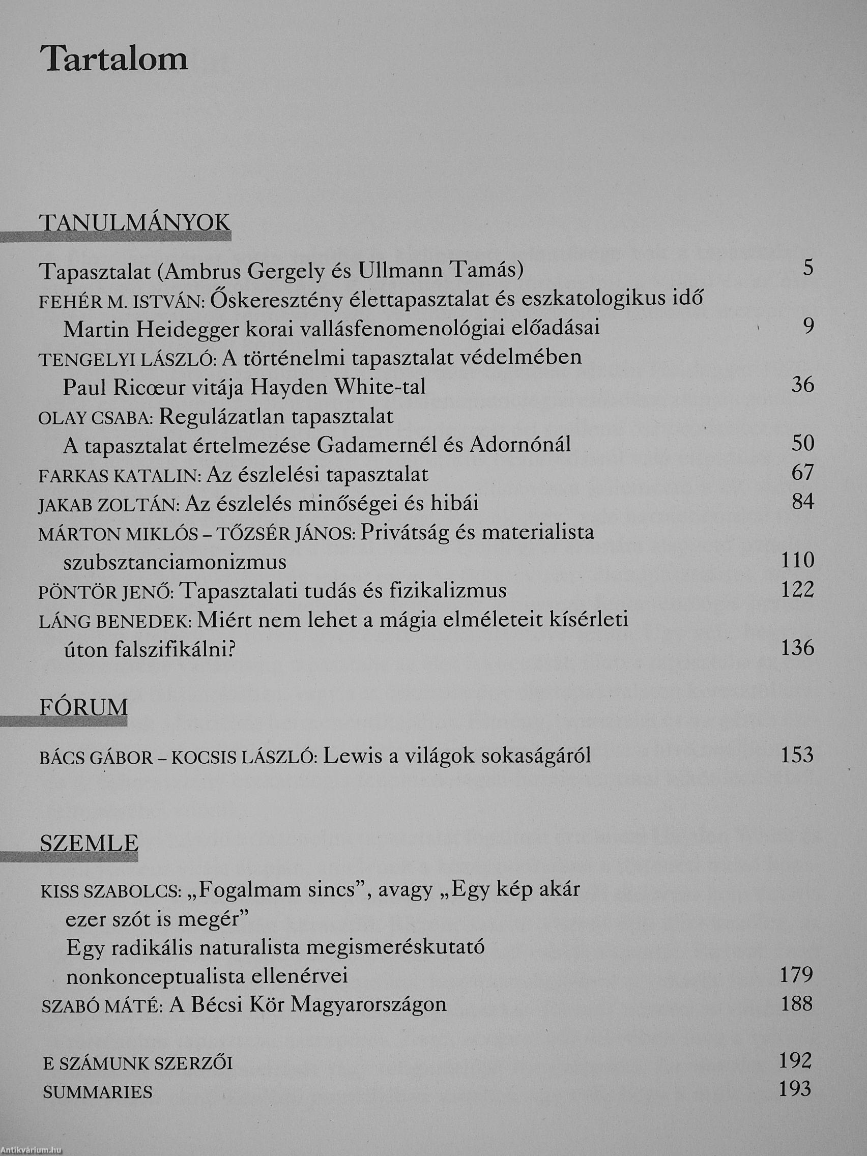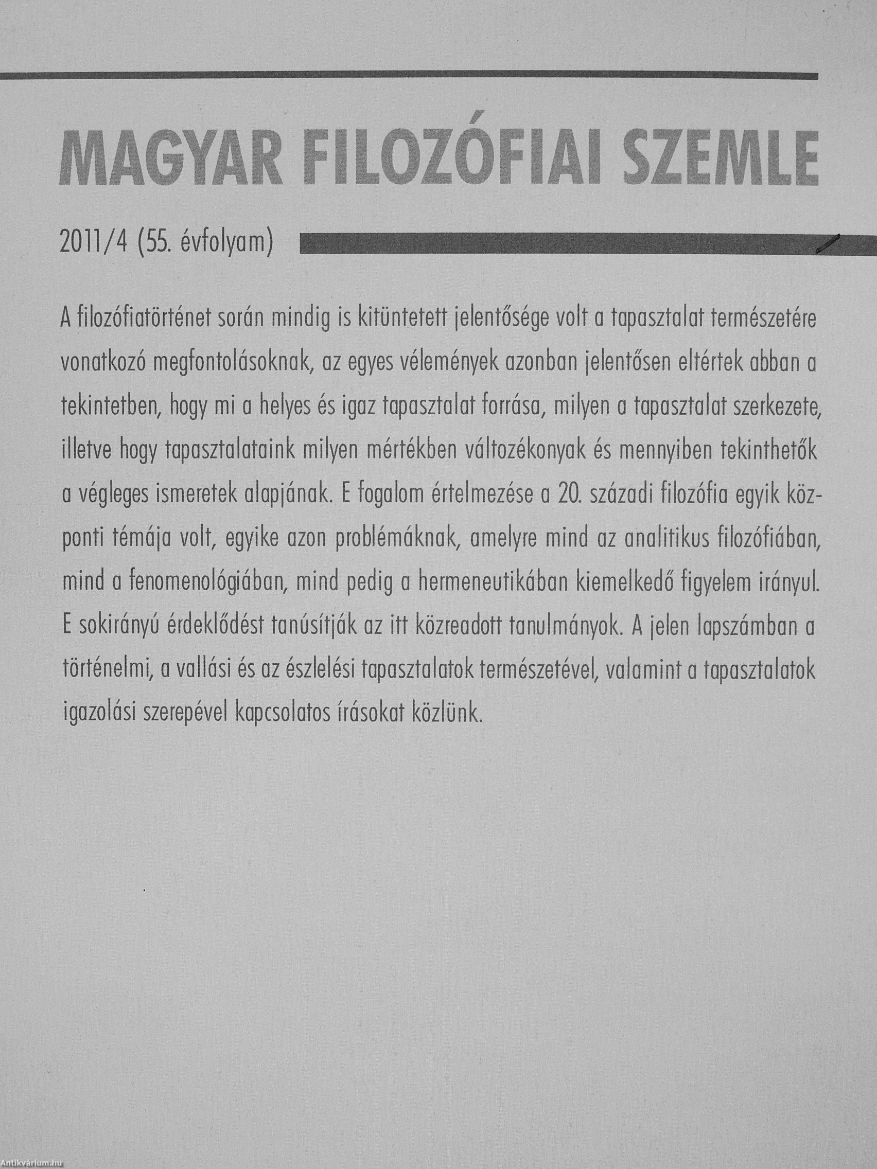 | Sorozatcím: | Magyar Filozófiai Szemle |