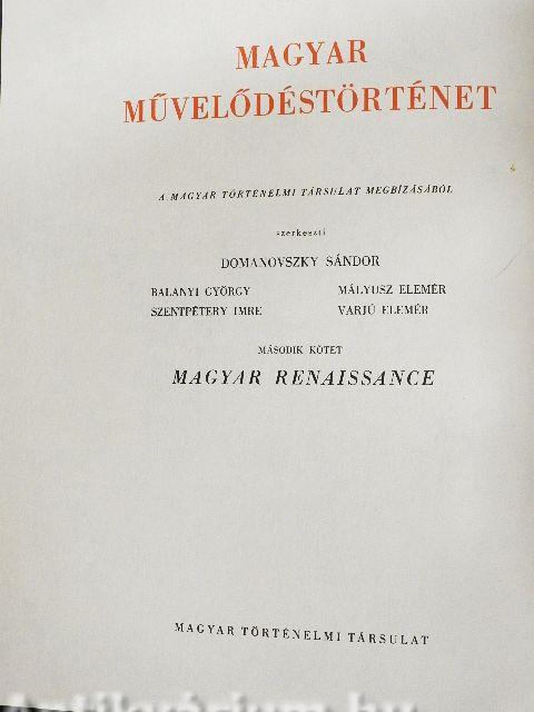 | Sorozatcím: | Magyar Művelődéstörténet |