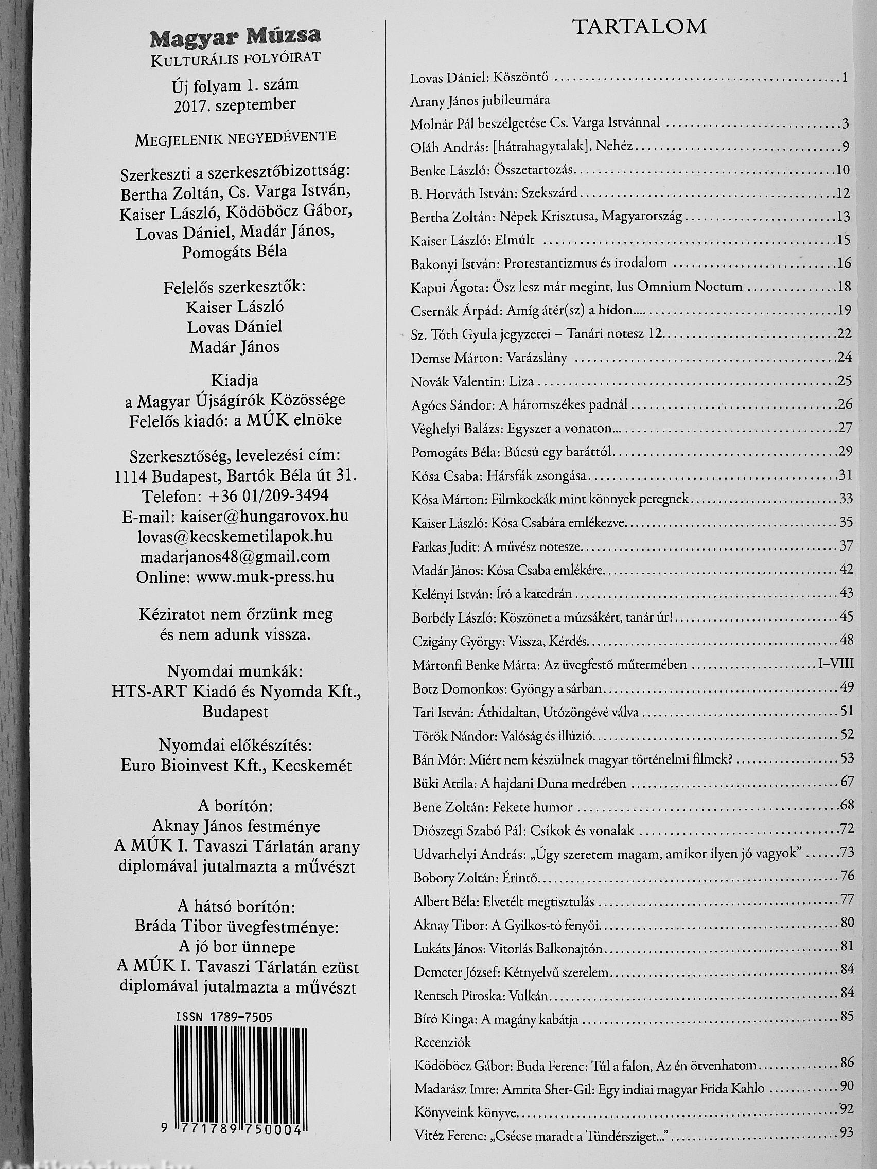 | Megjegyzés: | Megjelenik negyedévente. Néhány színes és fekete-fehér fotóval, reprodukcióval. További kapcsolódó személyek a kötetben. |
