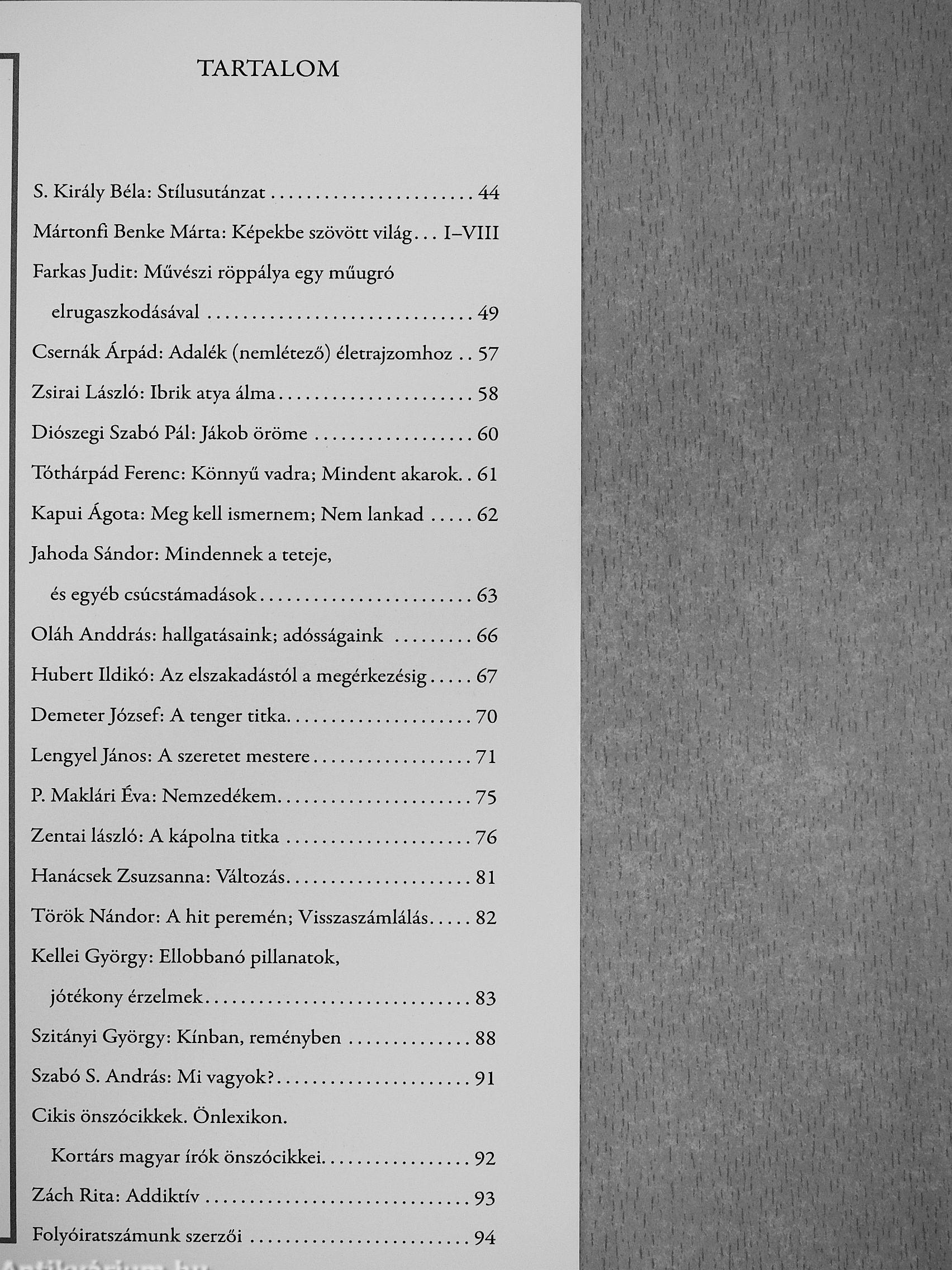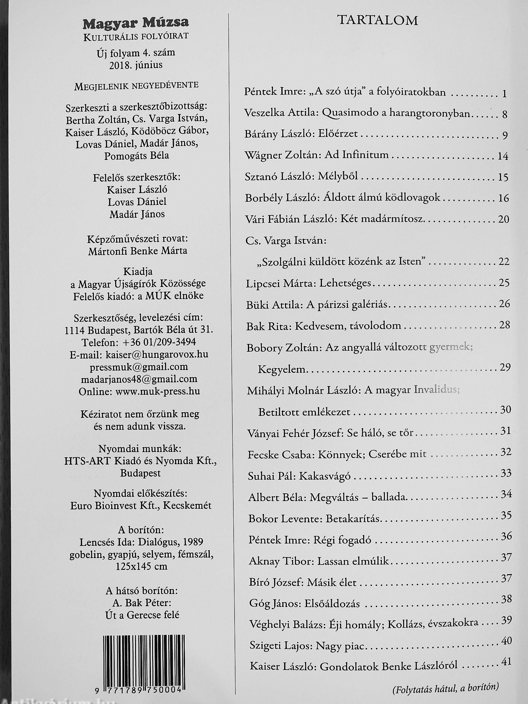 | Megjegyzés: | Megjelenik negyedévente. Néhány színes és fekete-fehér fotóval, reprodukcióval. További kapcsolódó személyek a kötetben. |