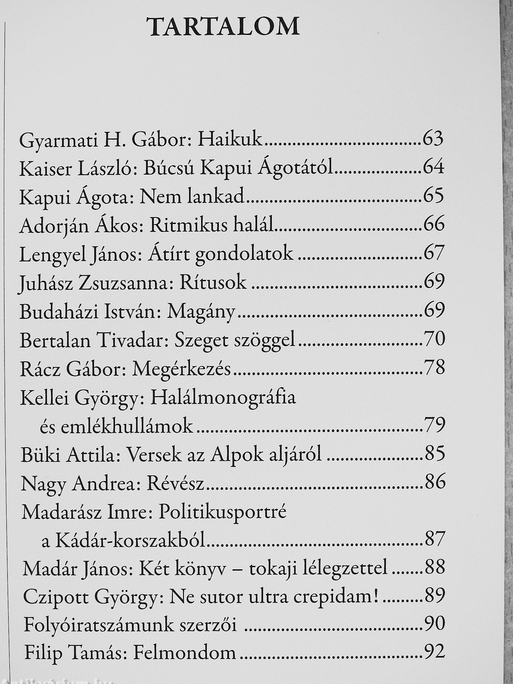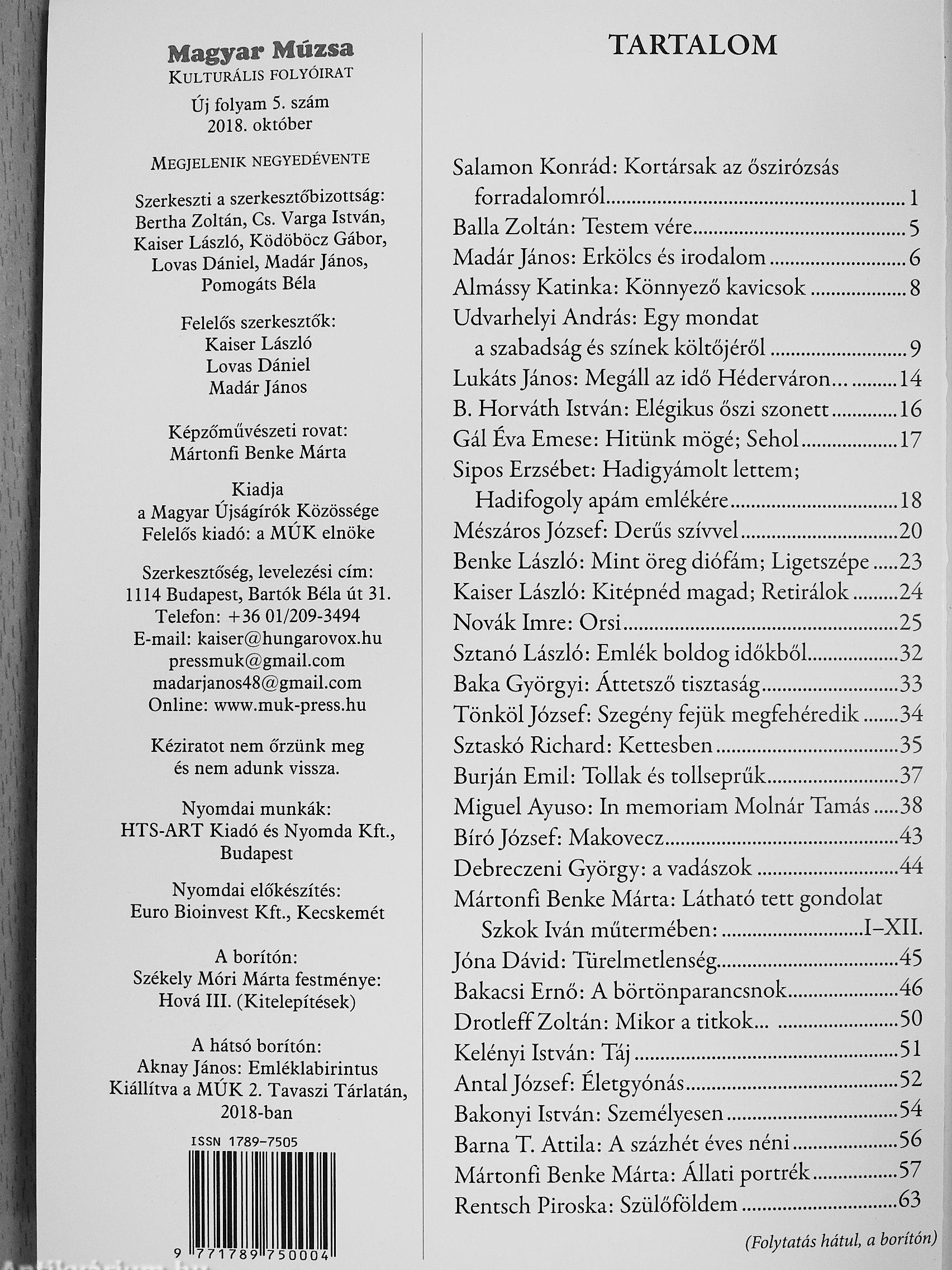 | Megjegyzés: | Megjelenik negyedévente. Néhány színes és fekete-fehér fotóval, reprodukcióval. További kapcsolódó személyek a kötetben. |