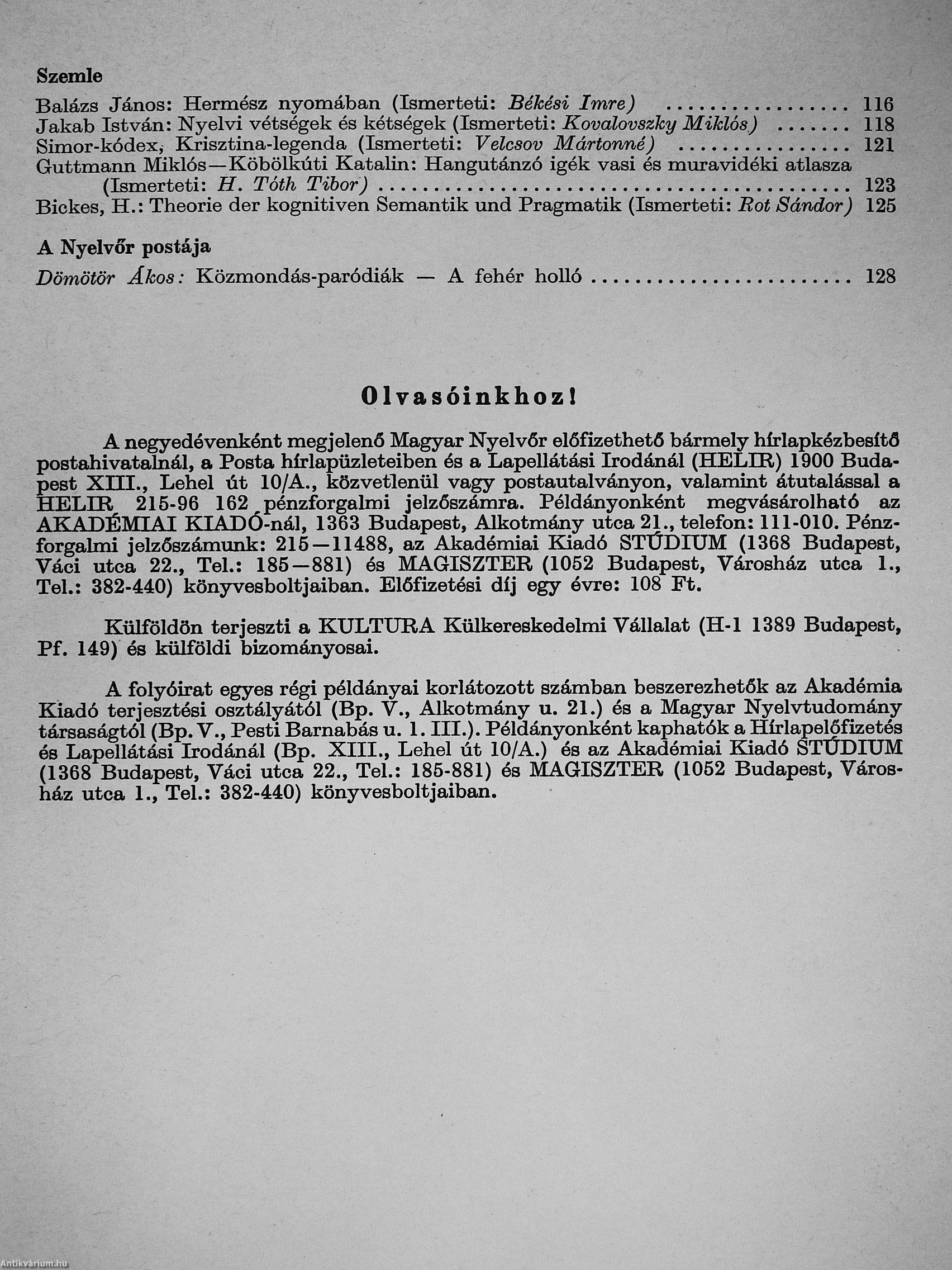 | Sorozatcím: | Magyar Nyelvőr |