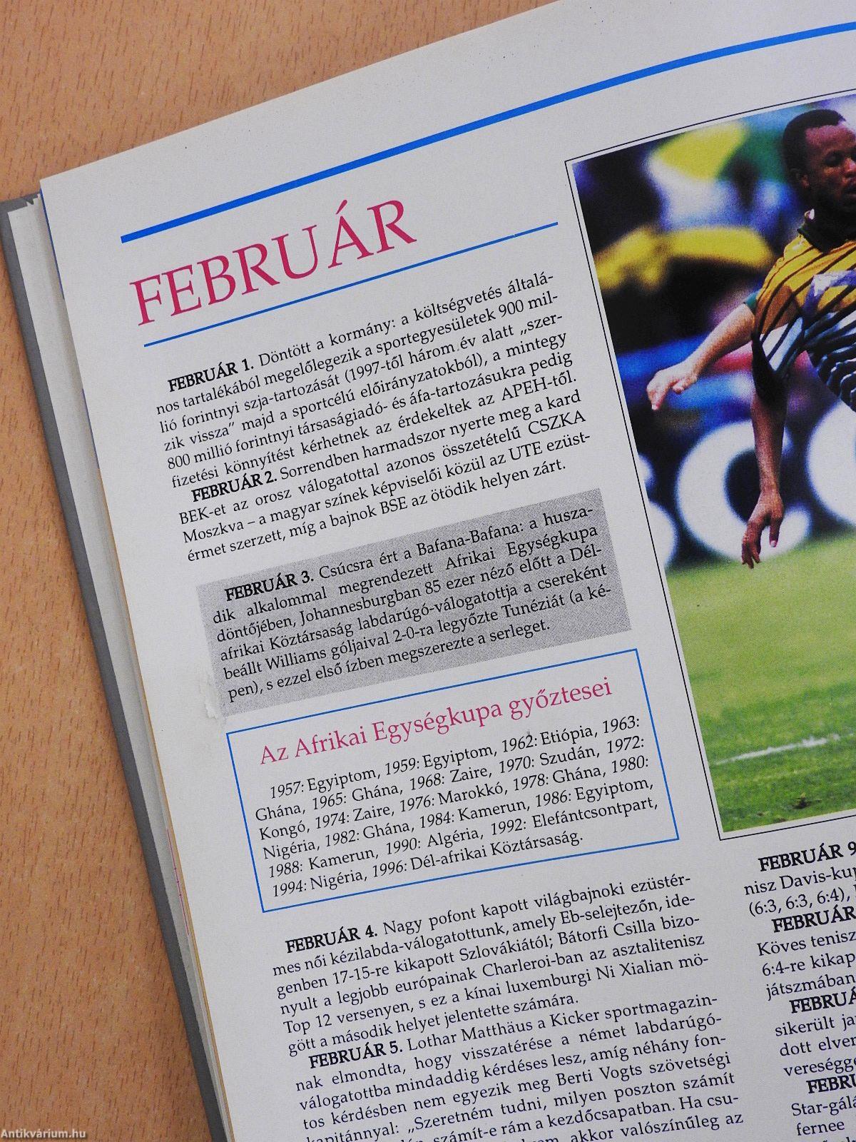 Ha május vége - akkor Magyar sportévkönyv. Hatodik éve már, hogy megújított külsővel, évről évre gyarapodó tartalommal utcára kerül ez a több mint öt évtizedes múltra visszatekintő periodika. A tárgyév elmúltát követően több hónapos "késéssel" ugyan, de az érdeklődők minden esztendőben biztosan megtalálják a könyvesboltok kínálatában.Hogy miért csak májusban, s nem előbb? Ennek a Kiadó viszonylag kicsi kapacitásától az anyagiak megteremtésének nehézségeiig hosszú a sora - amelyből azonban csak egyet, egy szakmai jellegű problémát szeretnék kiemelni.