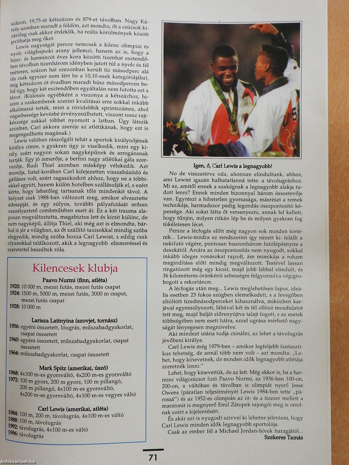 Ha ezzel a - elnézést az ide nem illő, de kikerülhetetlen kifejezésért - bornírt megközelítéssel azonosultunk volna, akkor a könyvből hiányoznának például minden idők egyik legnagyobb sportolójának - aki a címlapról küldi atlantai búcsúmosolyát szurkolóinak - idehaza elért eredményei.