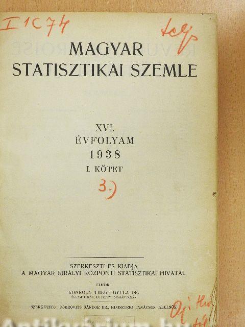Magyar Statisztikai Szemle 1938. (nem teljes évfolyam)