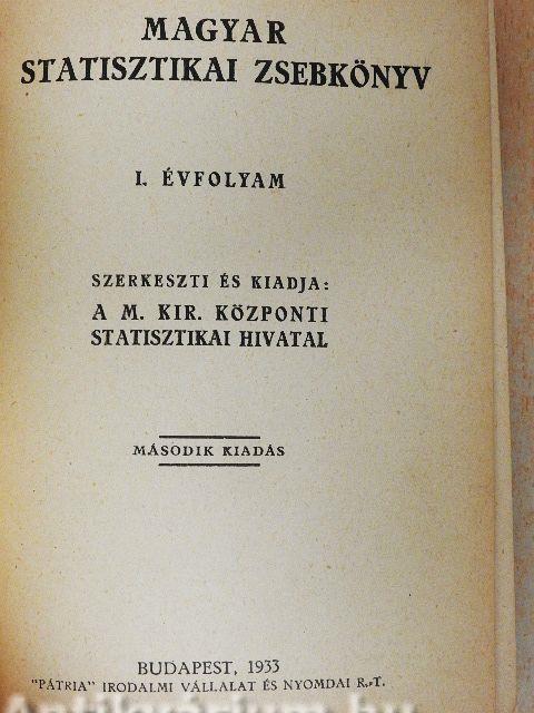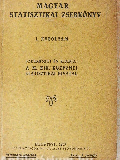 A „Magyar Statisztikai Zsebkönyv" első kötete általában 1931. évi adatokat tartalmaz, sikerült azonban néhány fejezeténél (hitelügy, közlekedés) már a legújabb (1932. évi) adatokat is felvenni.