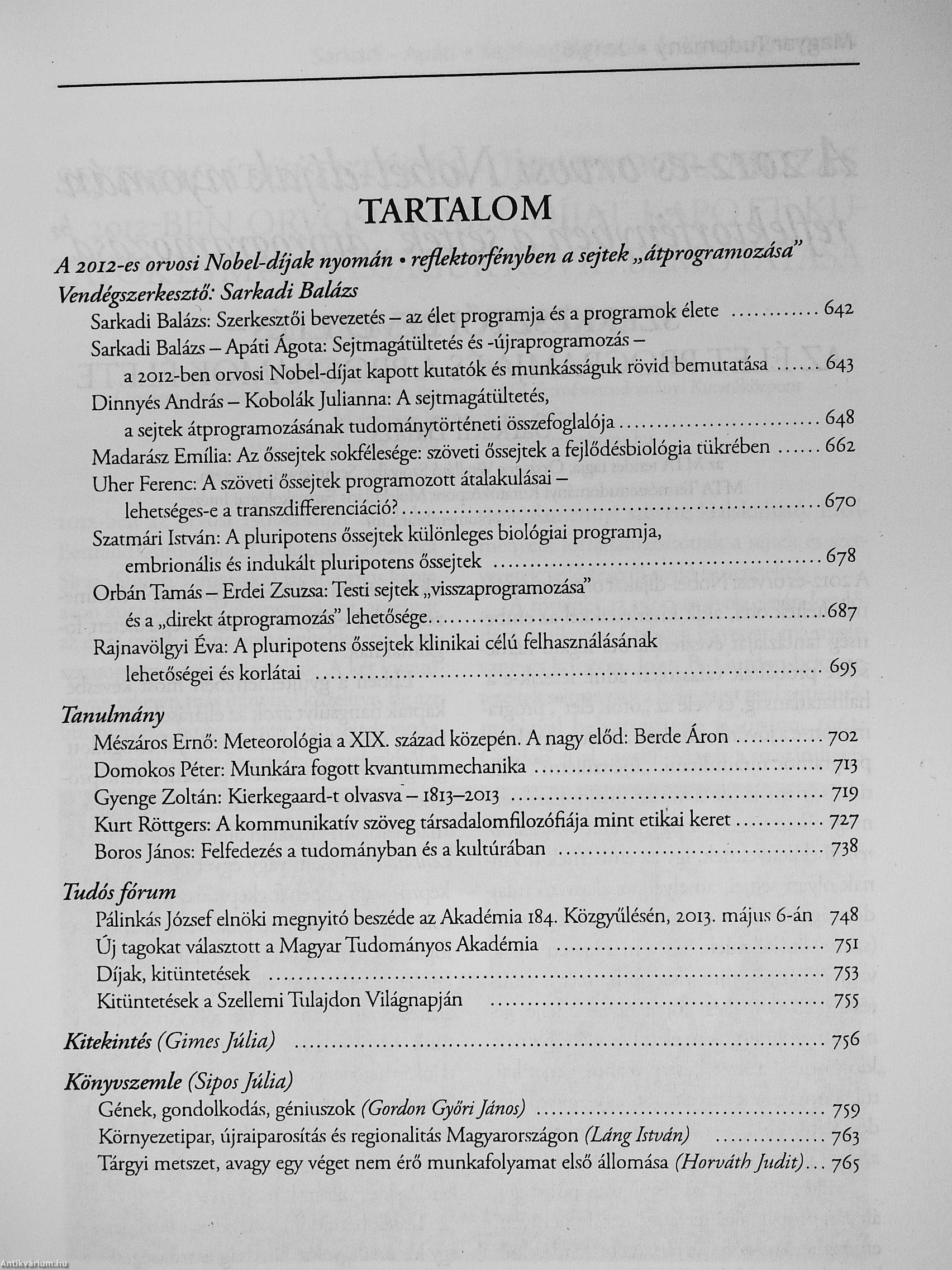 | Sorozatcím: | Magyar Tudomány |