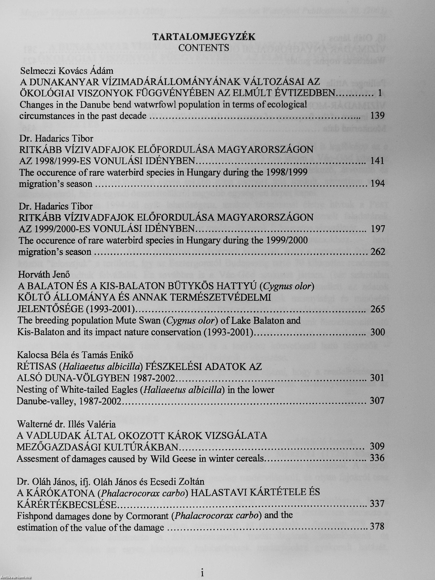 | Sorozatcím: | Magyar Vízivad Közlemények |