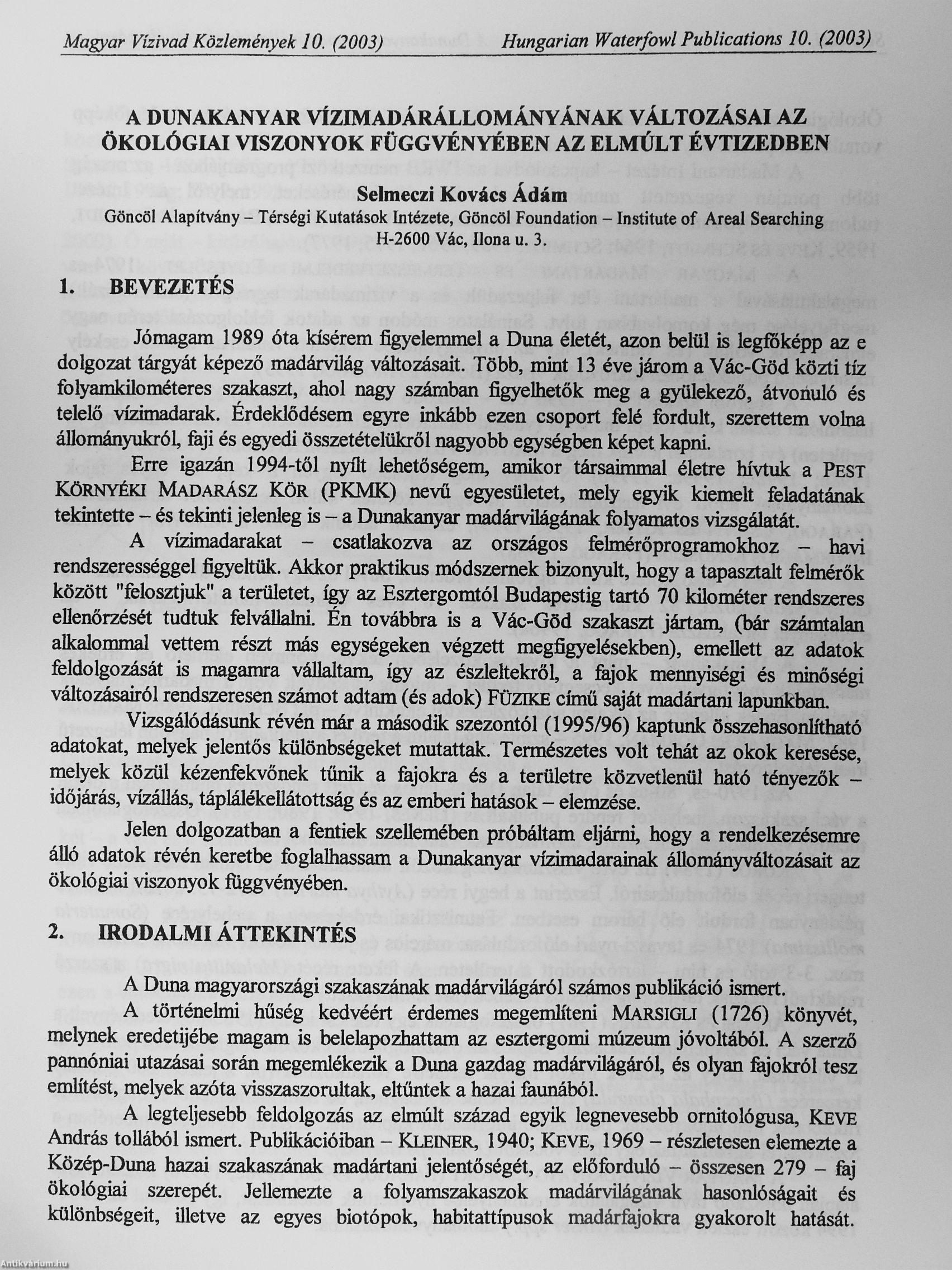 | Kiadó: | Nyugat-Magyarországi Egyetem Vadgazdálkodási Intézet Magyar Vízivad Kutató Csoport |