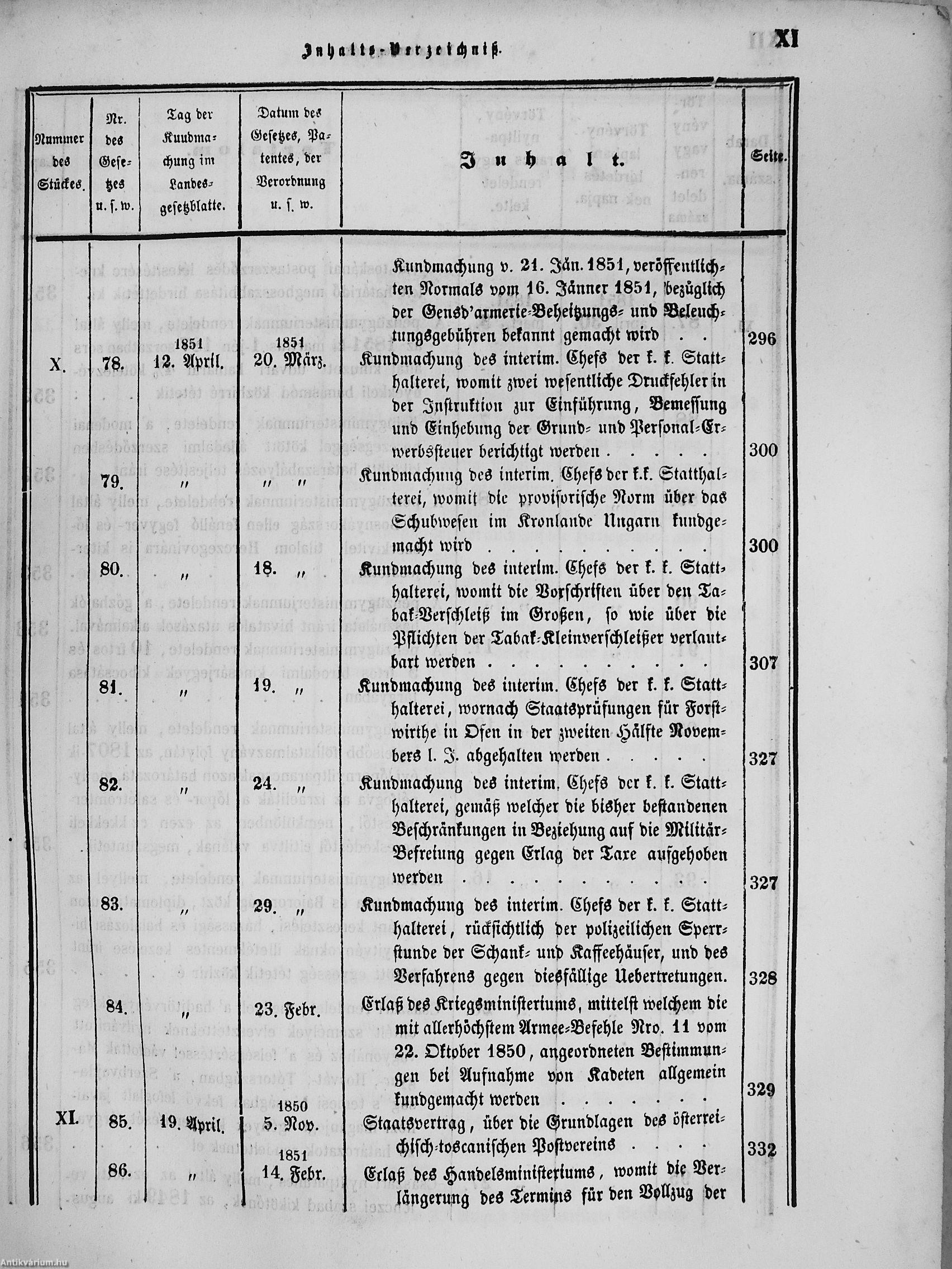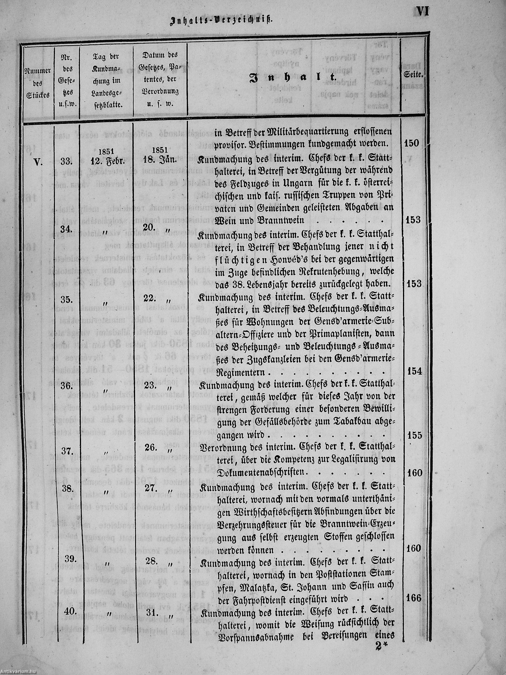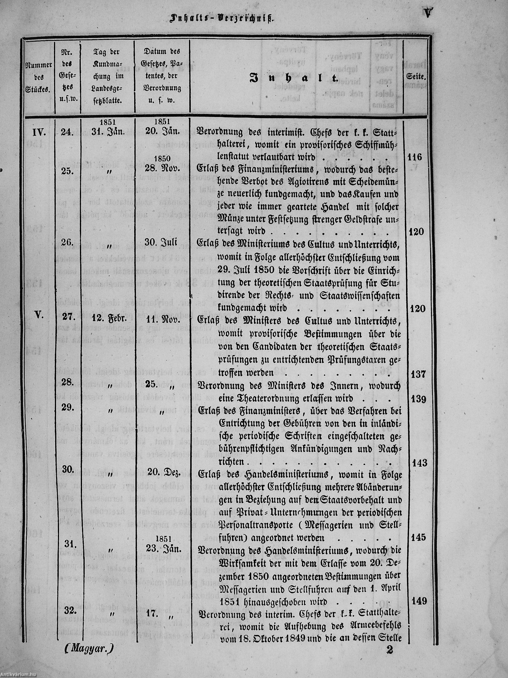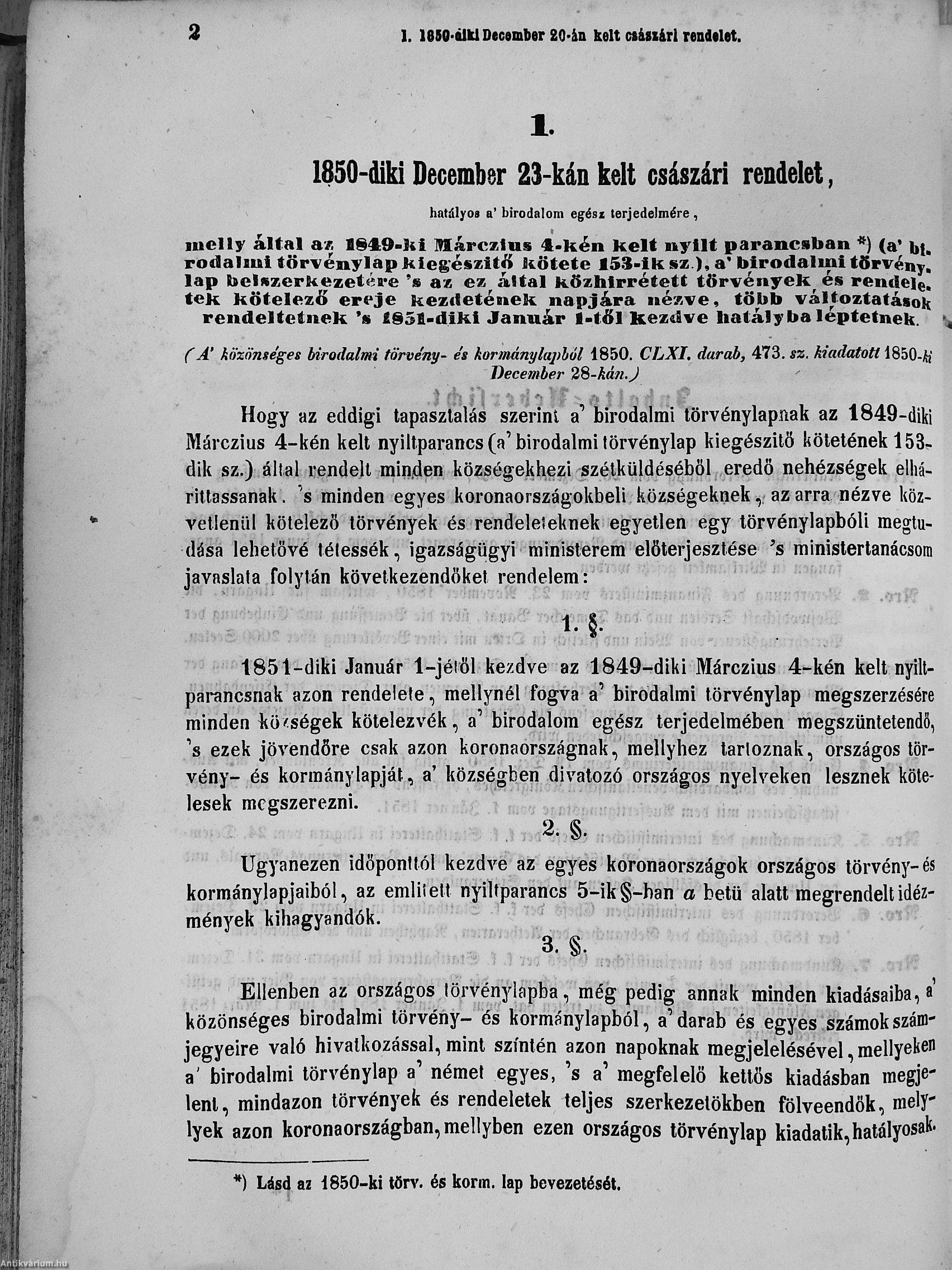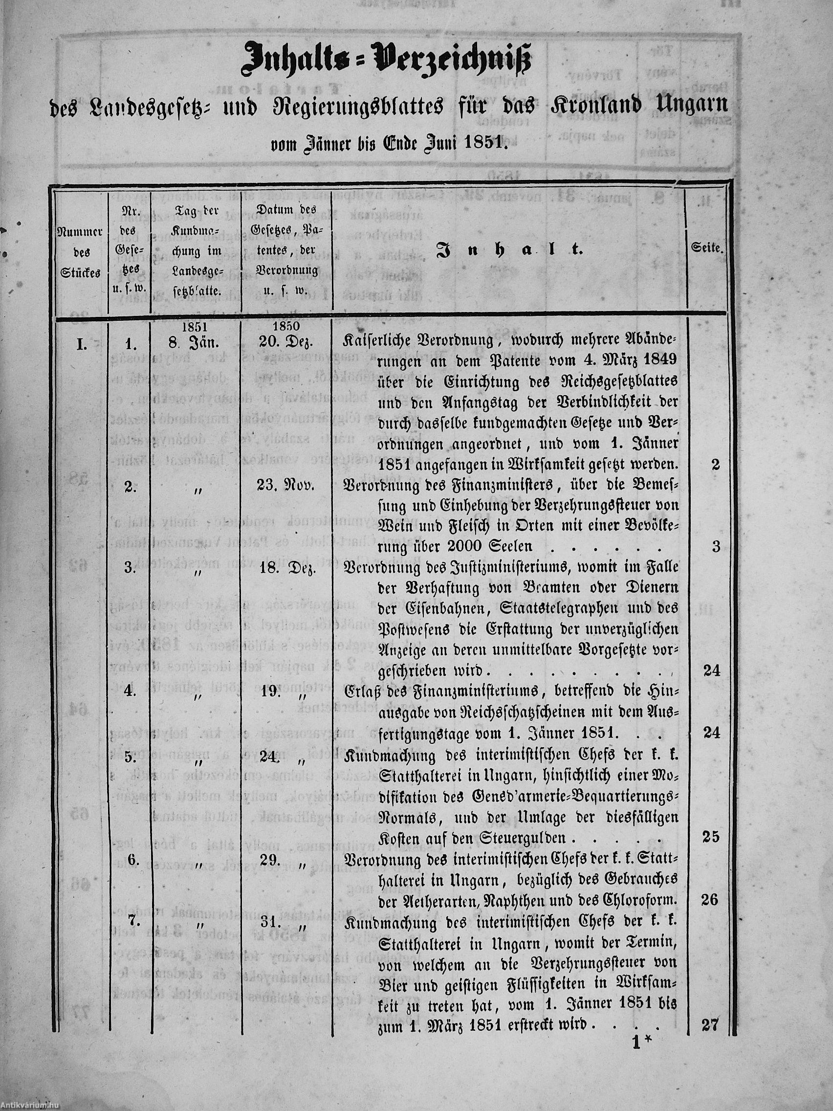 II. évfolyam I. kötet/1851. januárius elejétől Junius végeig/Landesgeseß- und Regierungsblatt für das kronland Ungarn II. Jahrgang - I. Band 1851. vom Anfang Jänner bis Ende Juni