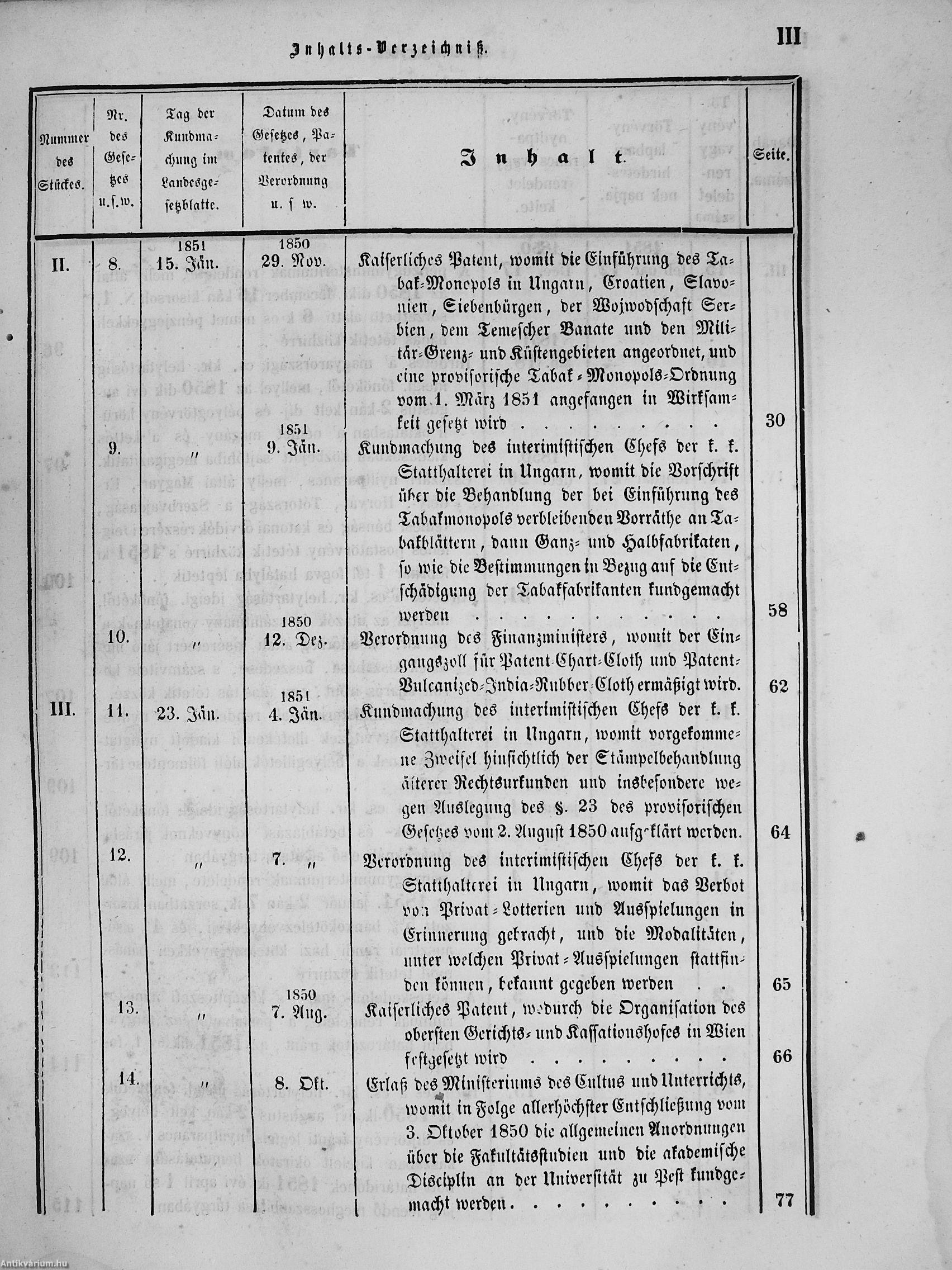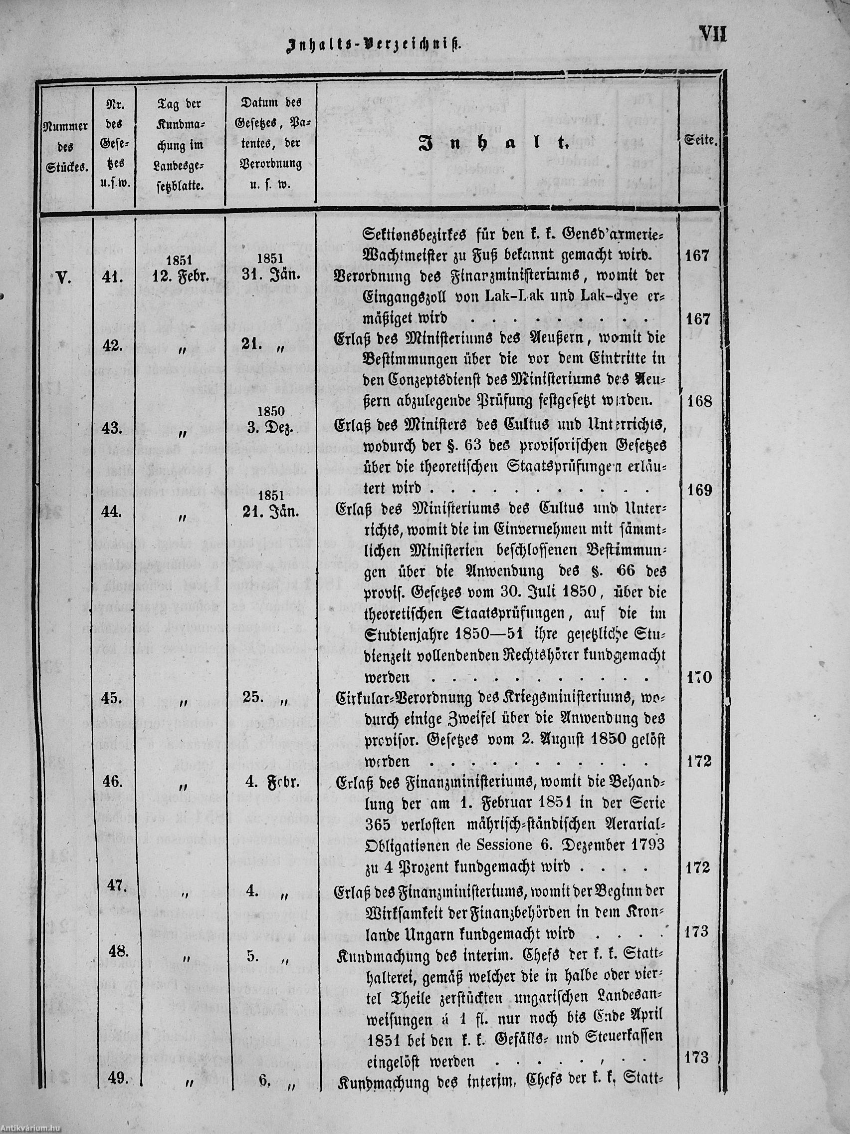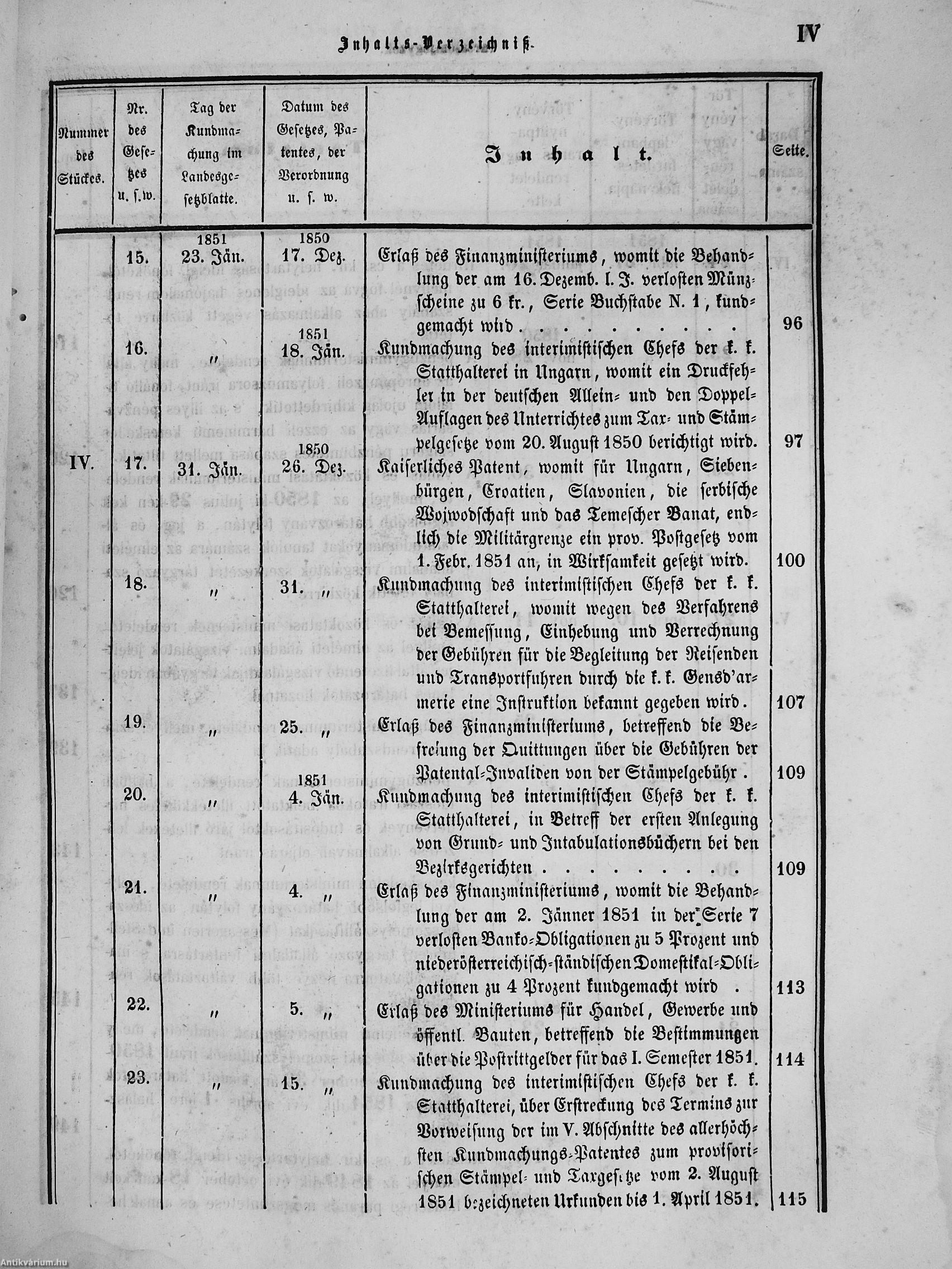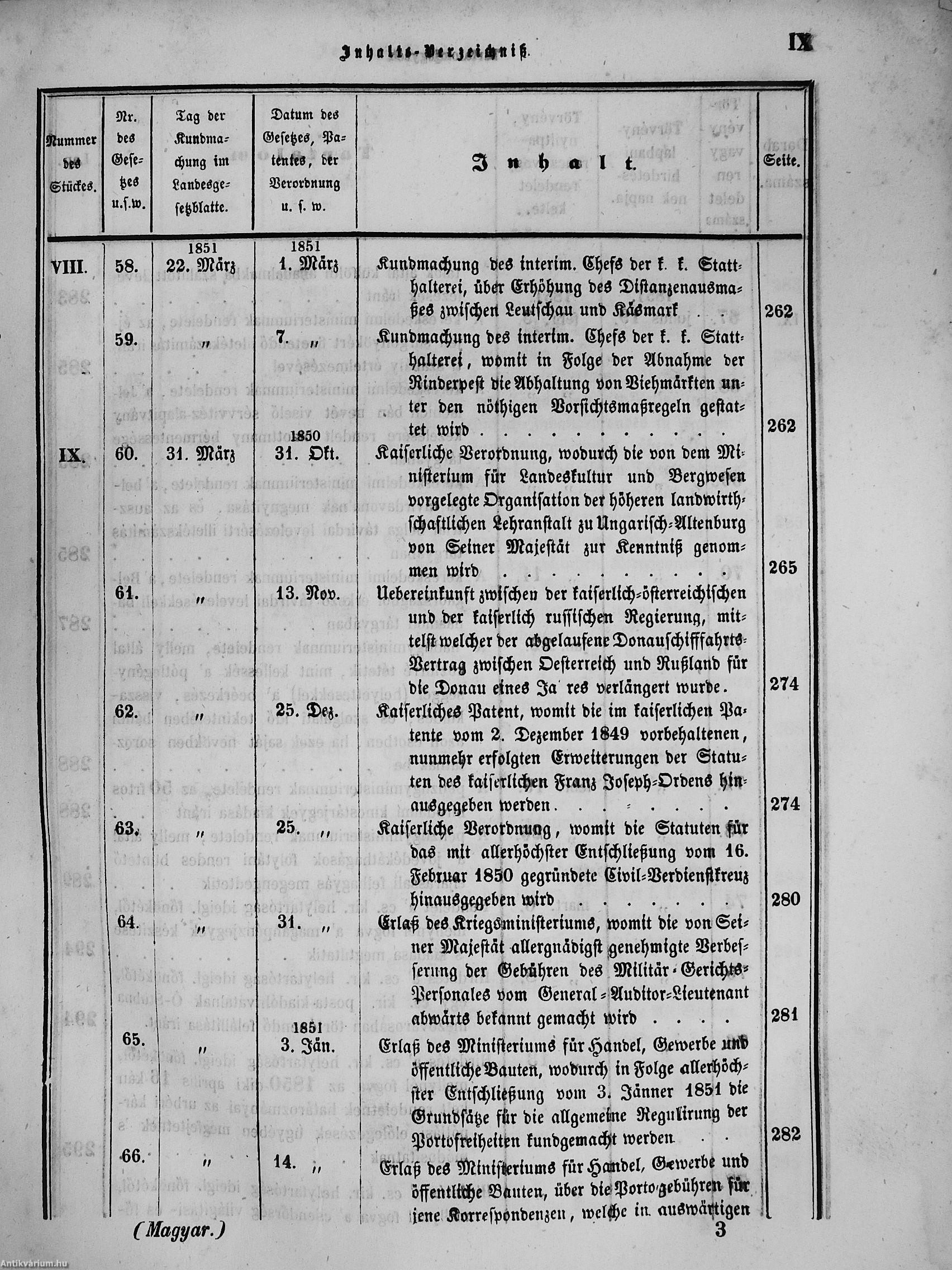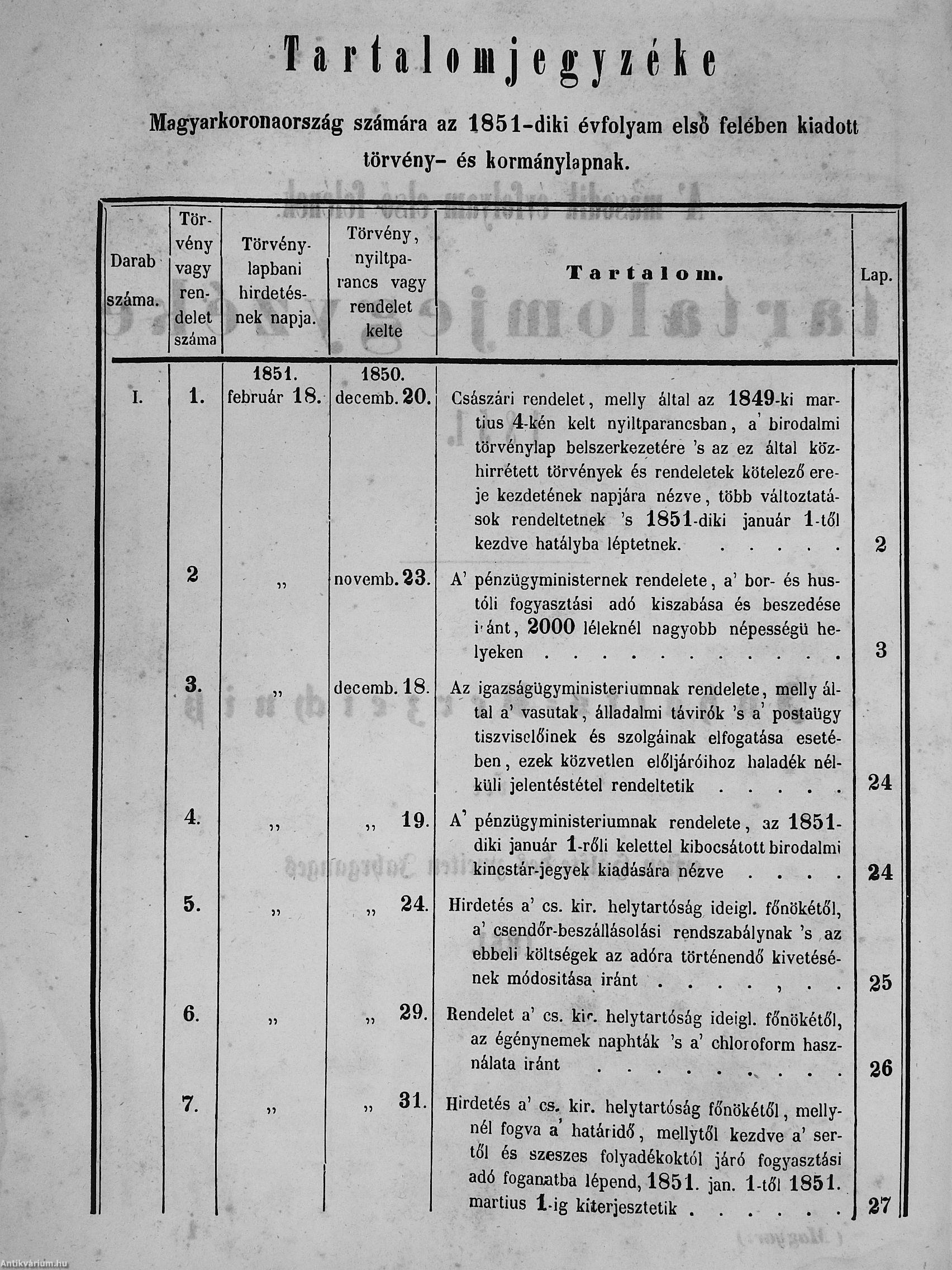 II. évfolyam I. kötet/1851. januárius elejétől Junius végeig/Landesgeseß- und Regierungsblatt für das kronland Ungarn II. Jahrgang - I. Band 1851. vom Anfang Jänner bis Ende Juni