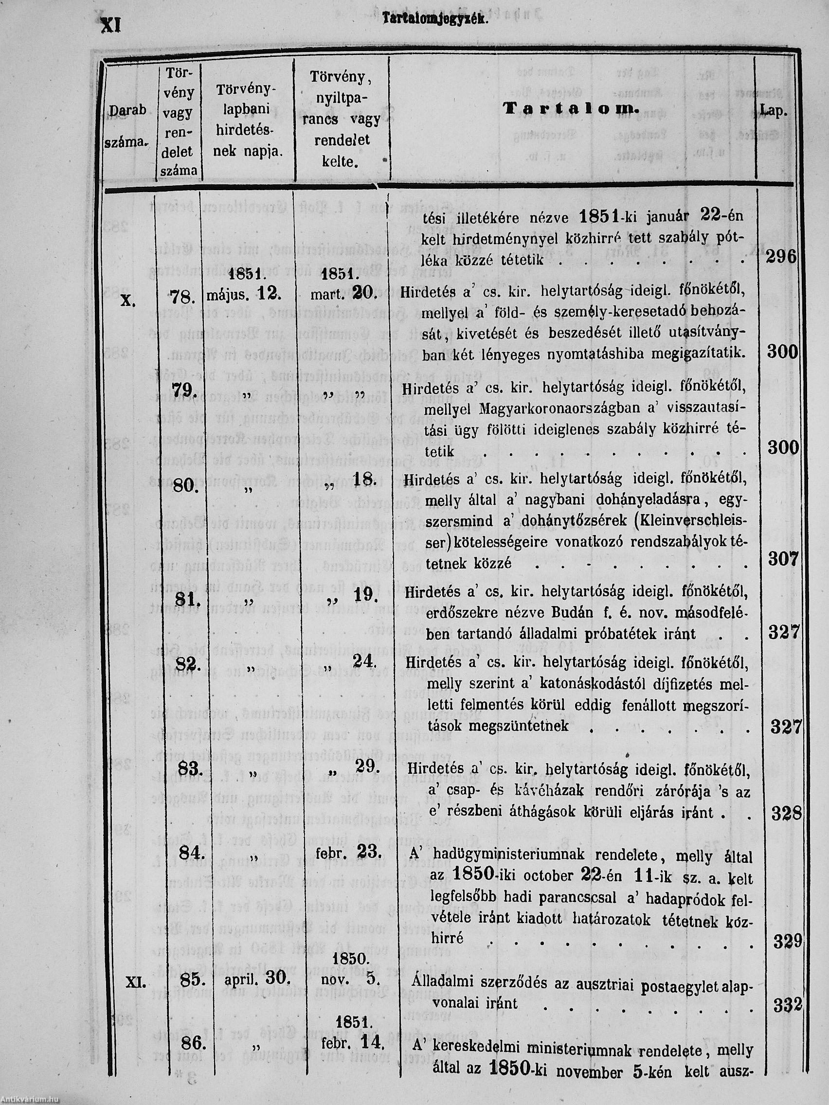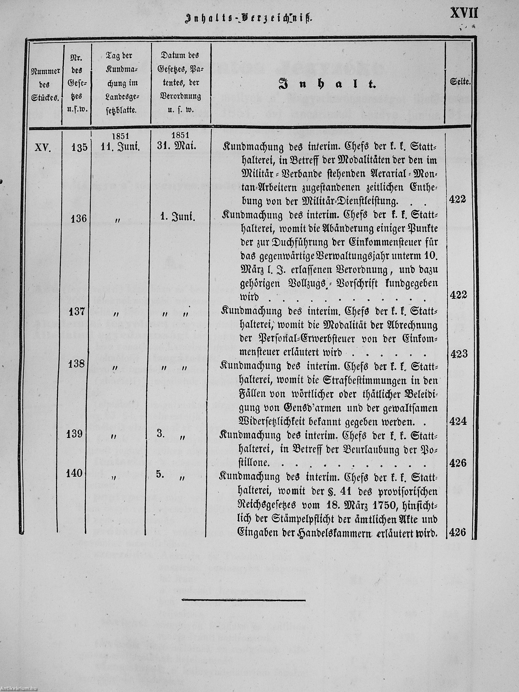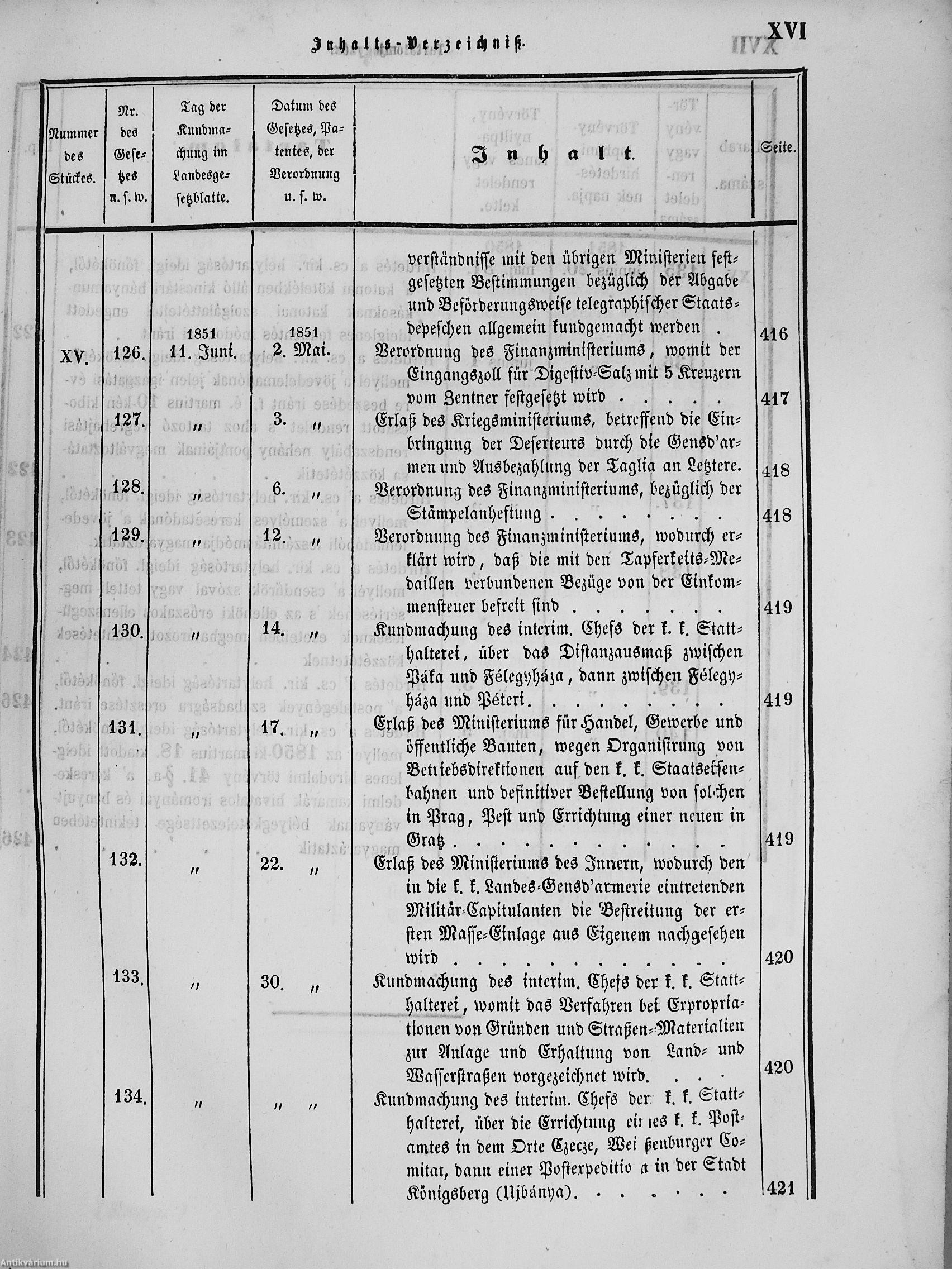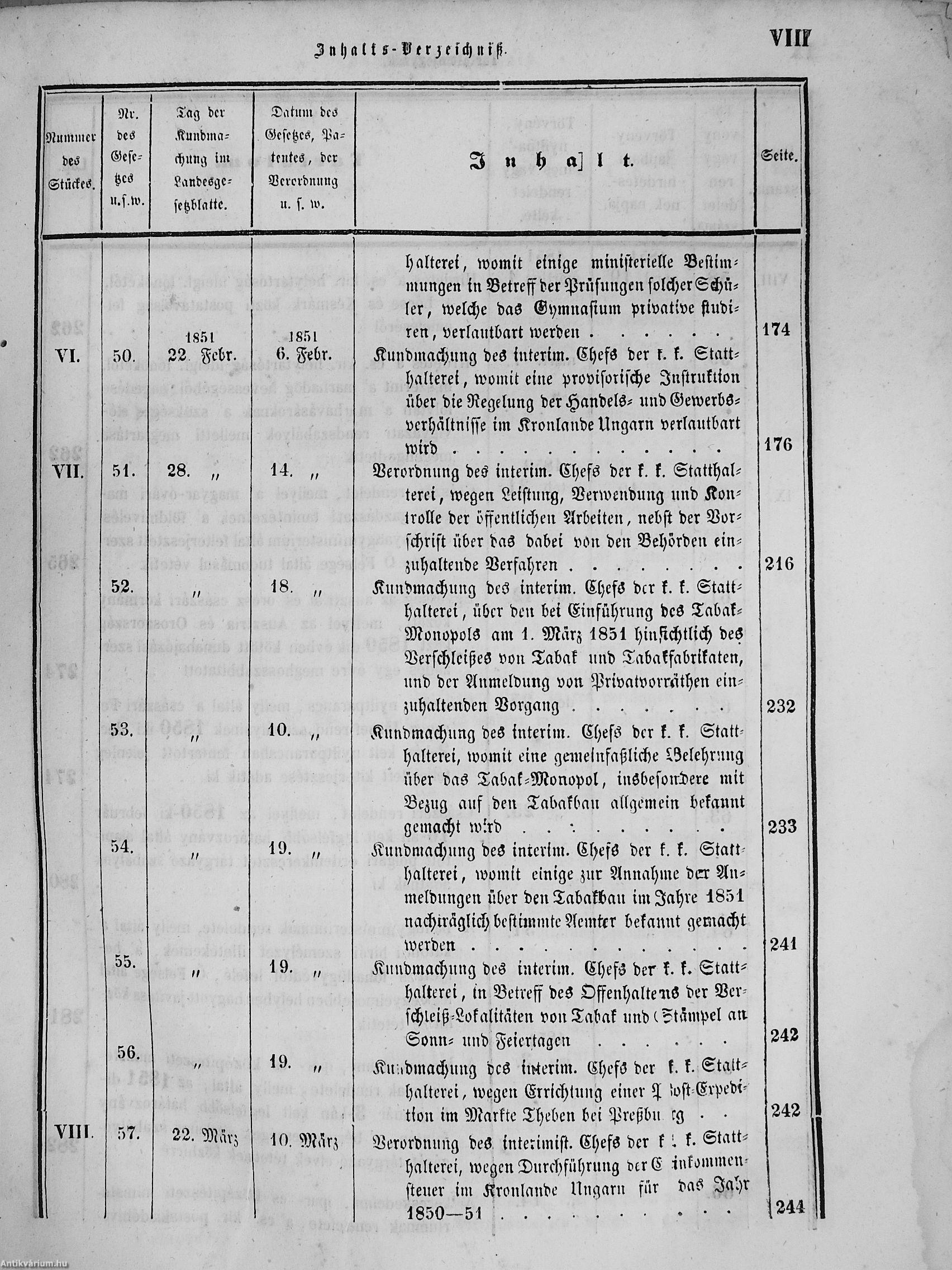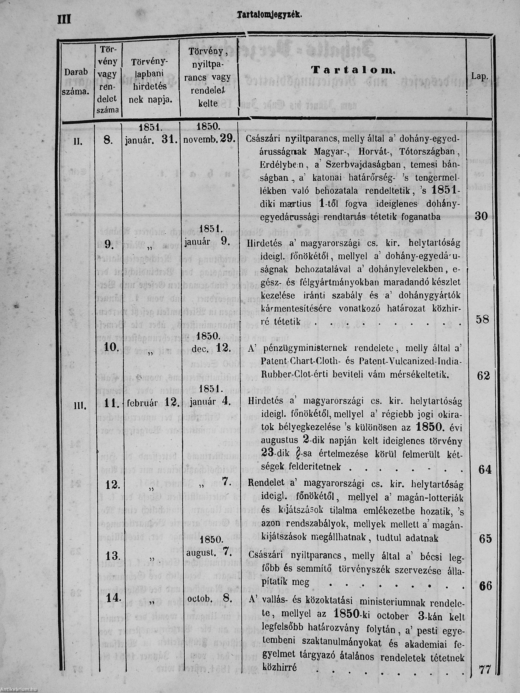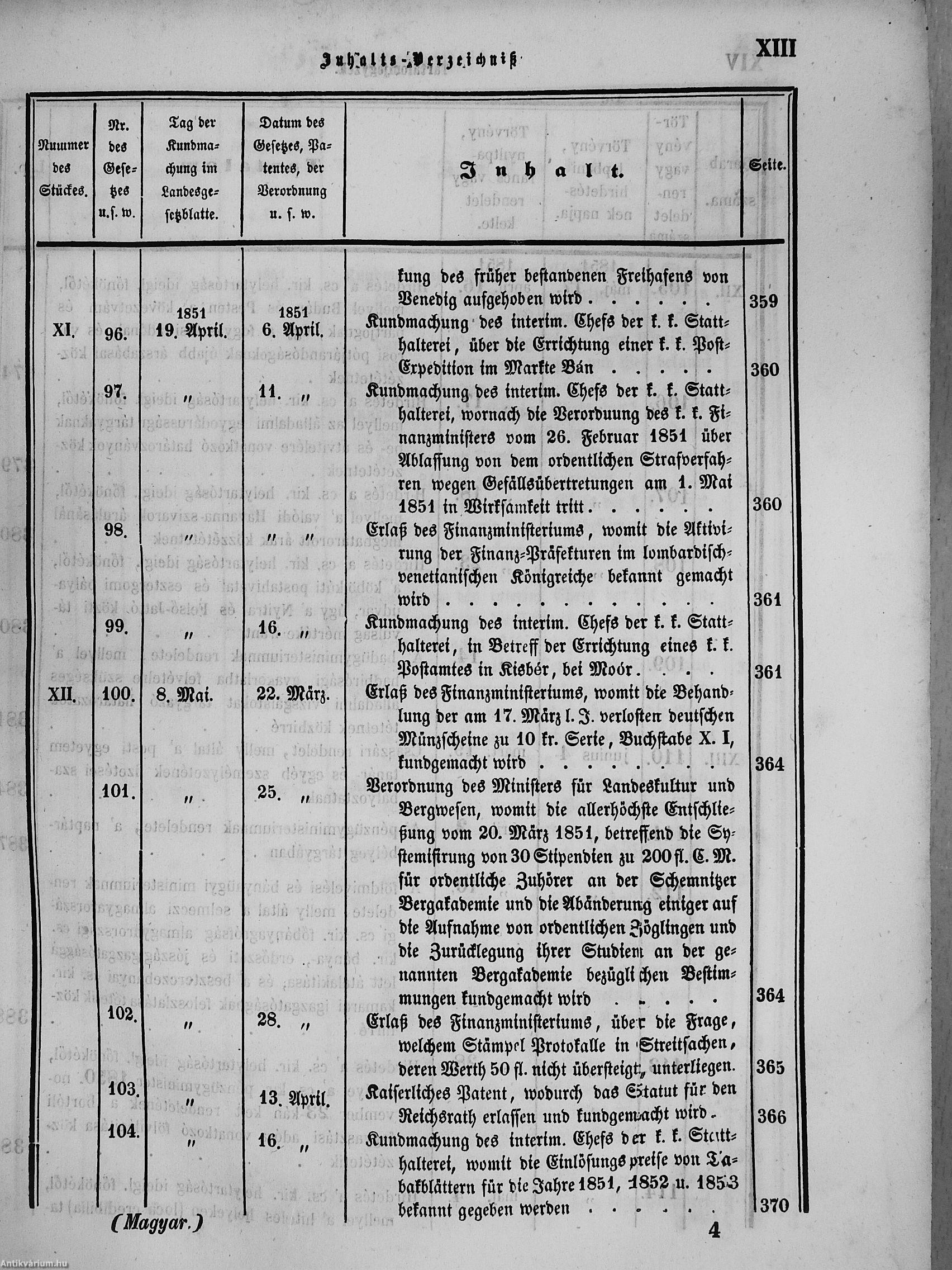 II. évfolyam I. kötet/1851. januárius elejétől Junius végeig/Landesgeseß- und Regierungsblatt für das kronland Ungarn II. Jahrgang - I. Band 1851. vom Anfang Jänner bis Ende Juni