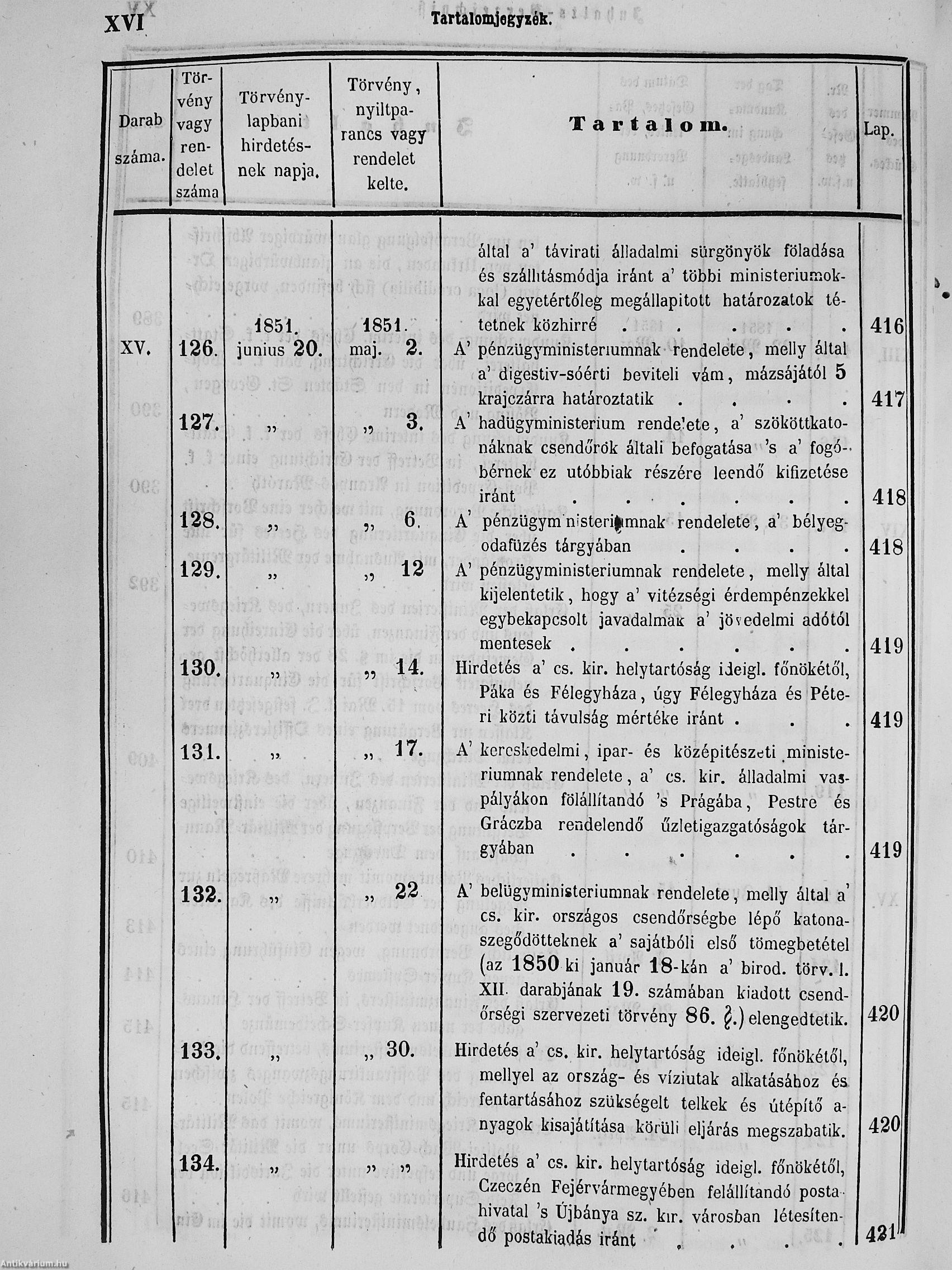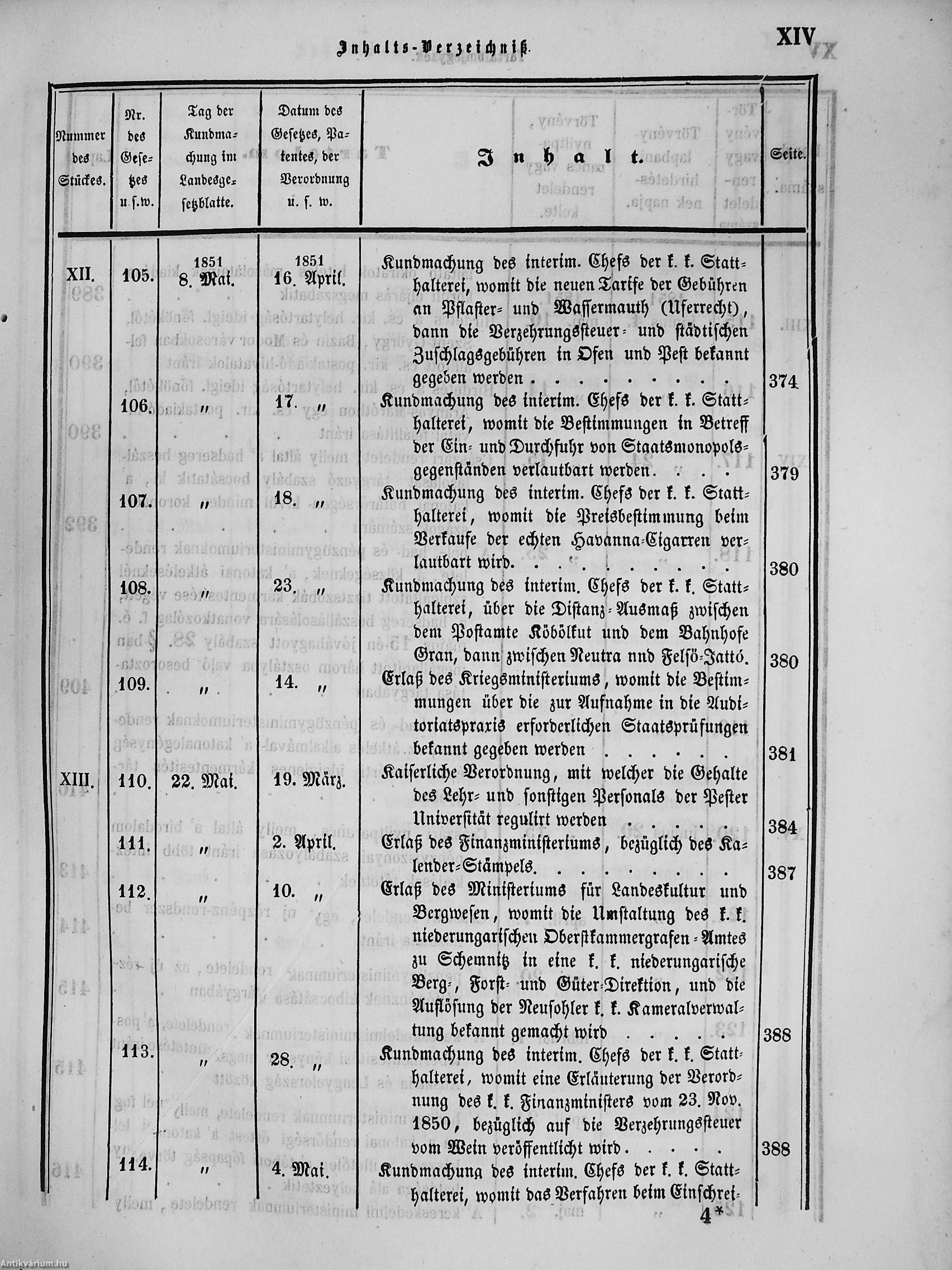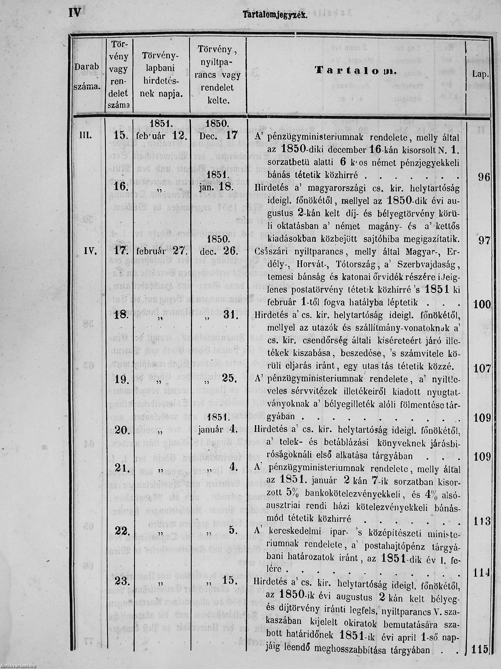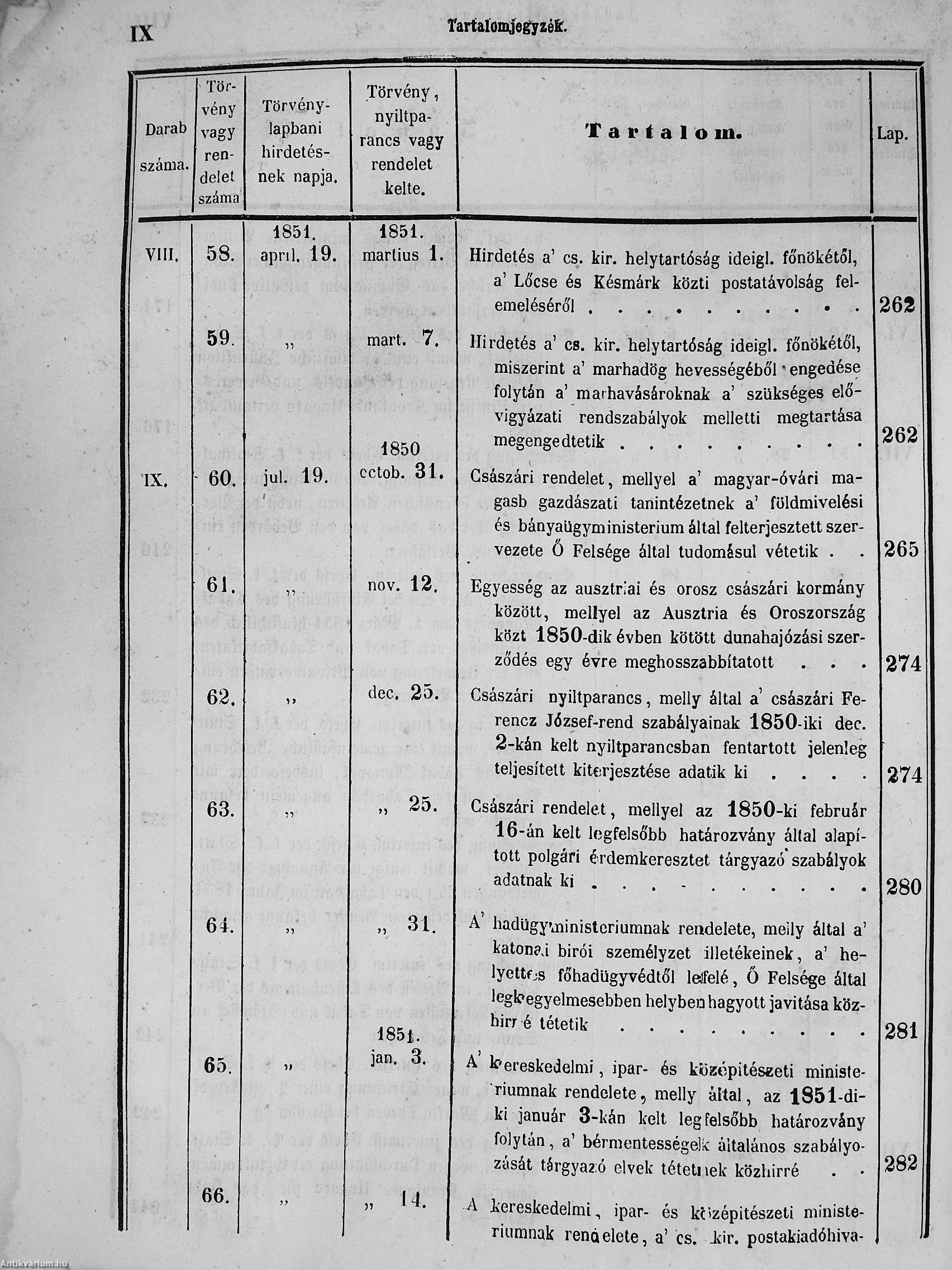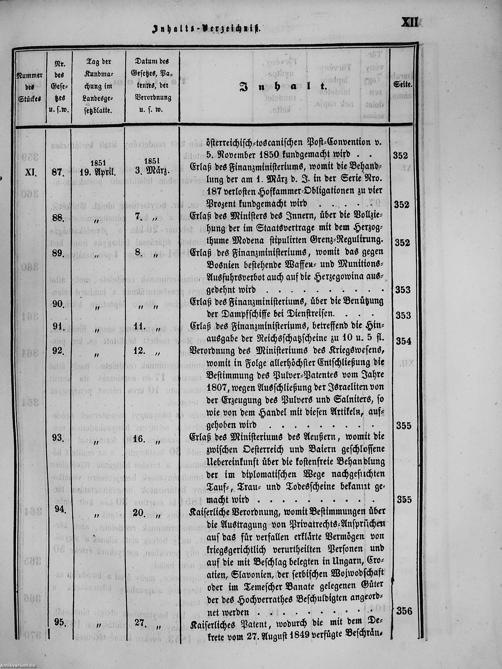 II. évfolyam I. kötet/1851. januárius elejétől Junius végeig/Landesgeseß- und Regierungsblatt für das kronland Ungarn II. Jahrgang - I. Band 1851. vom Anfang Jänner bis Ende Juni