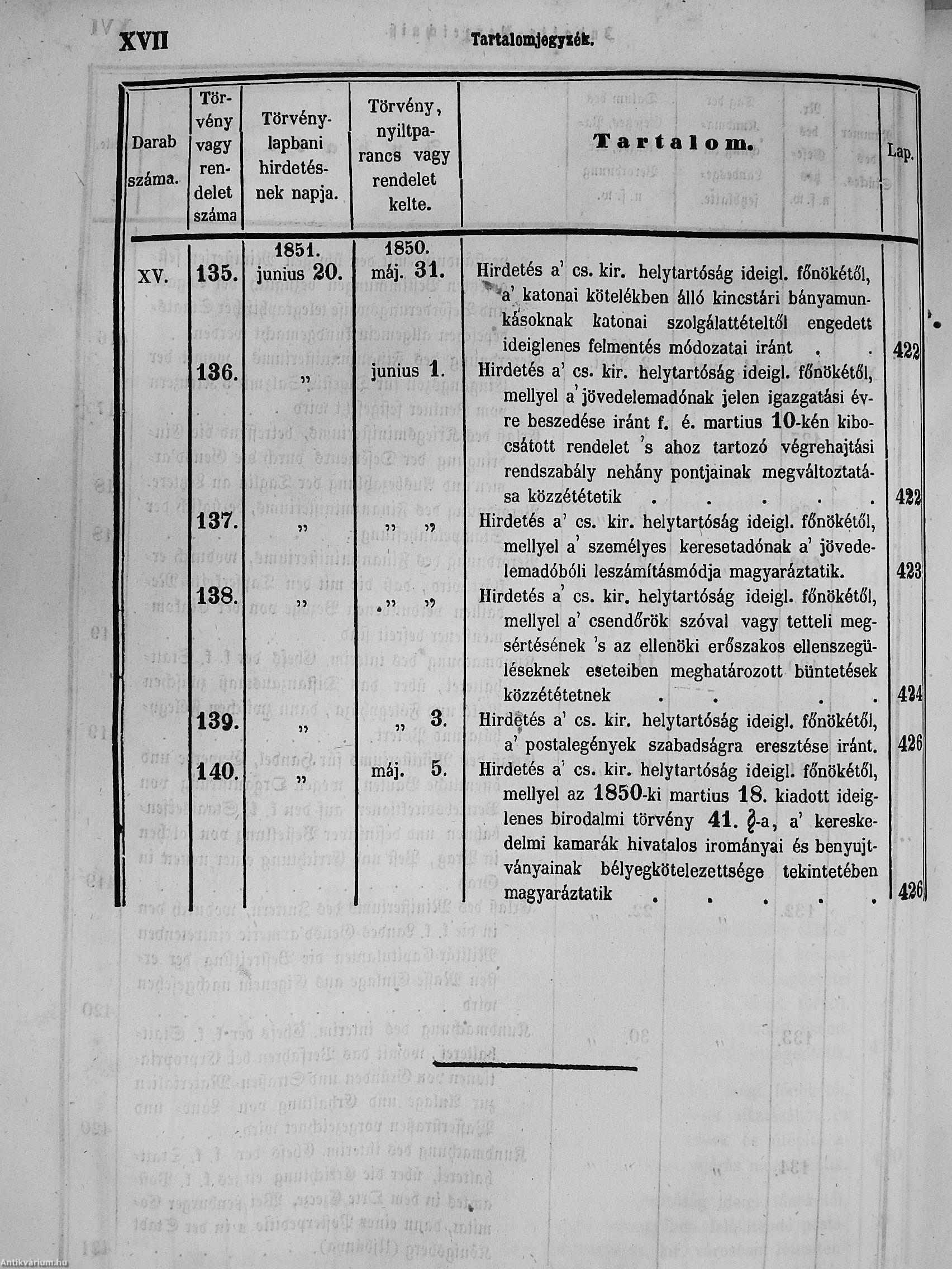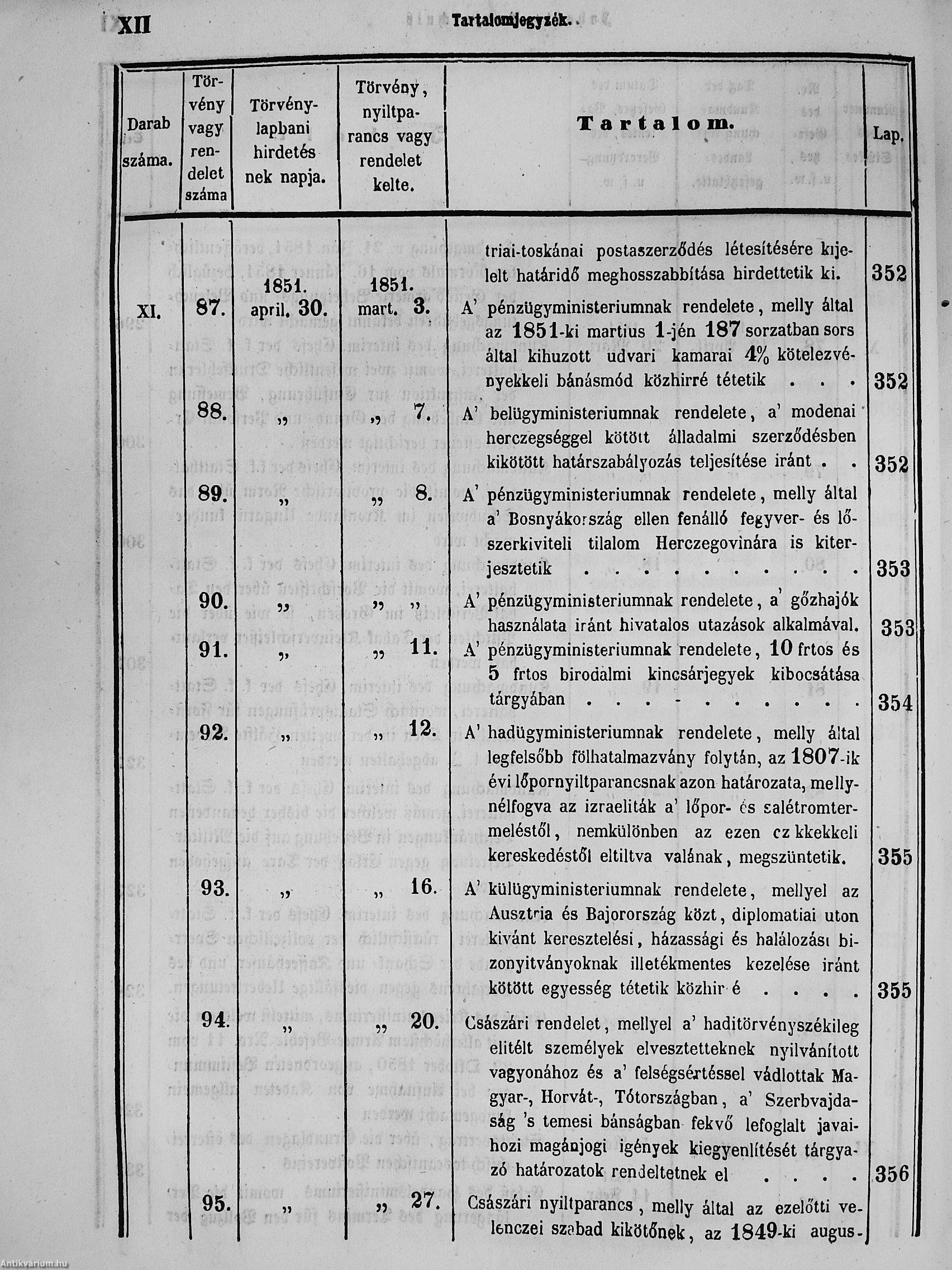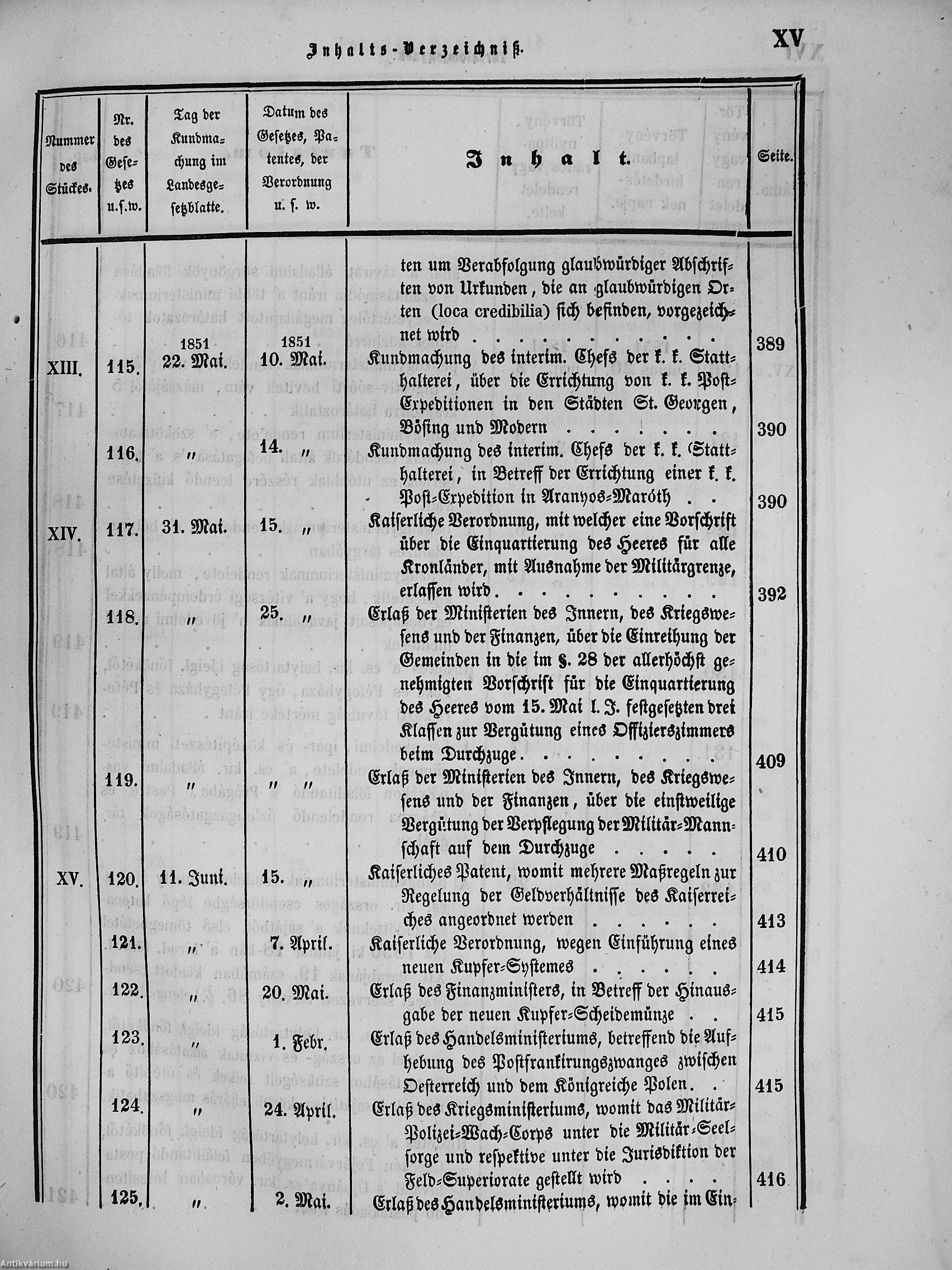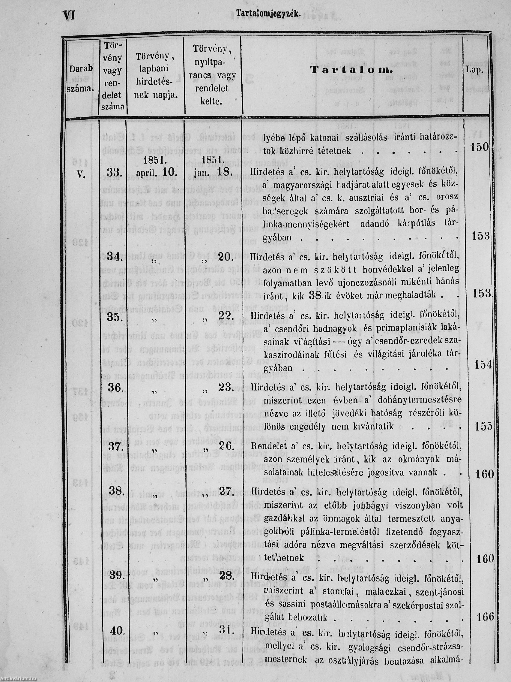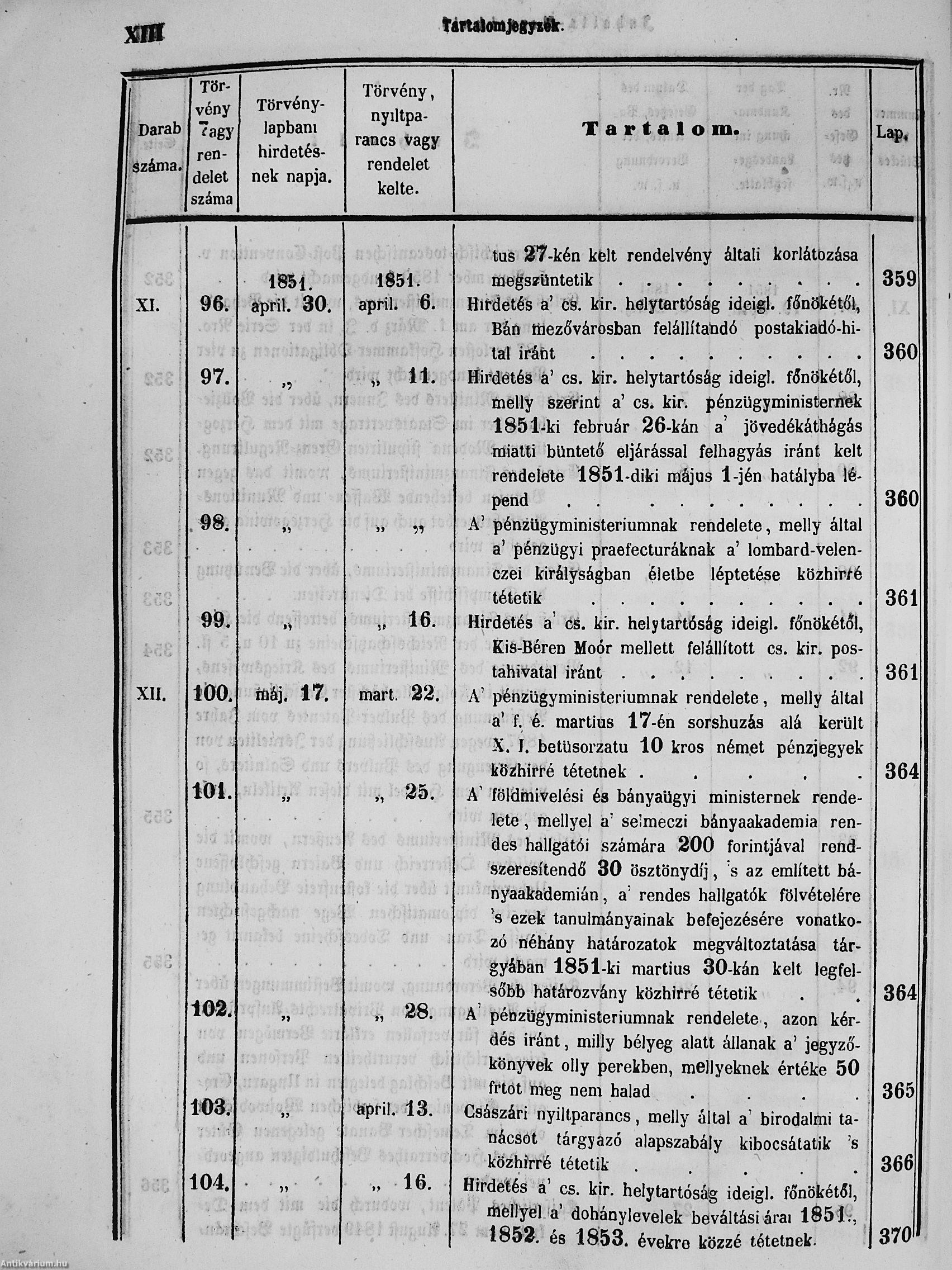 II. évfolyam I. kötet/1851. januárius elejétől Junius végeig/Landesgeseß- und Regierungsblatt für das kronland Ungarn II. Jahrgang - I. Band 1851. vom Anfang Jänner bis Ende Juni