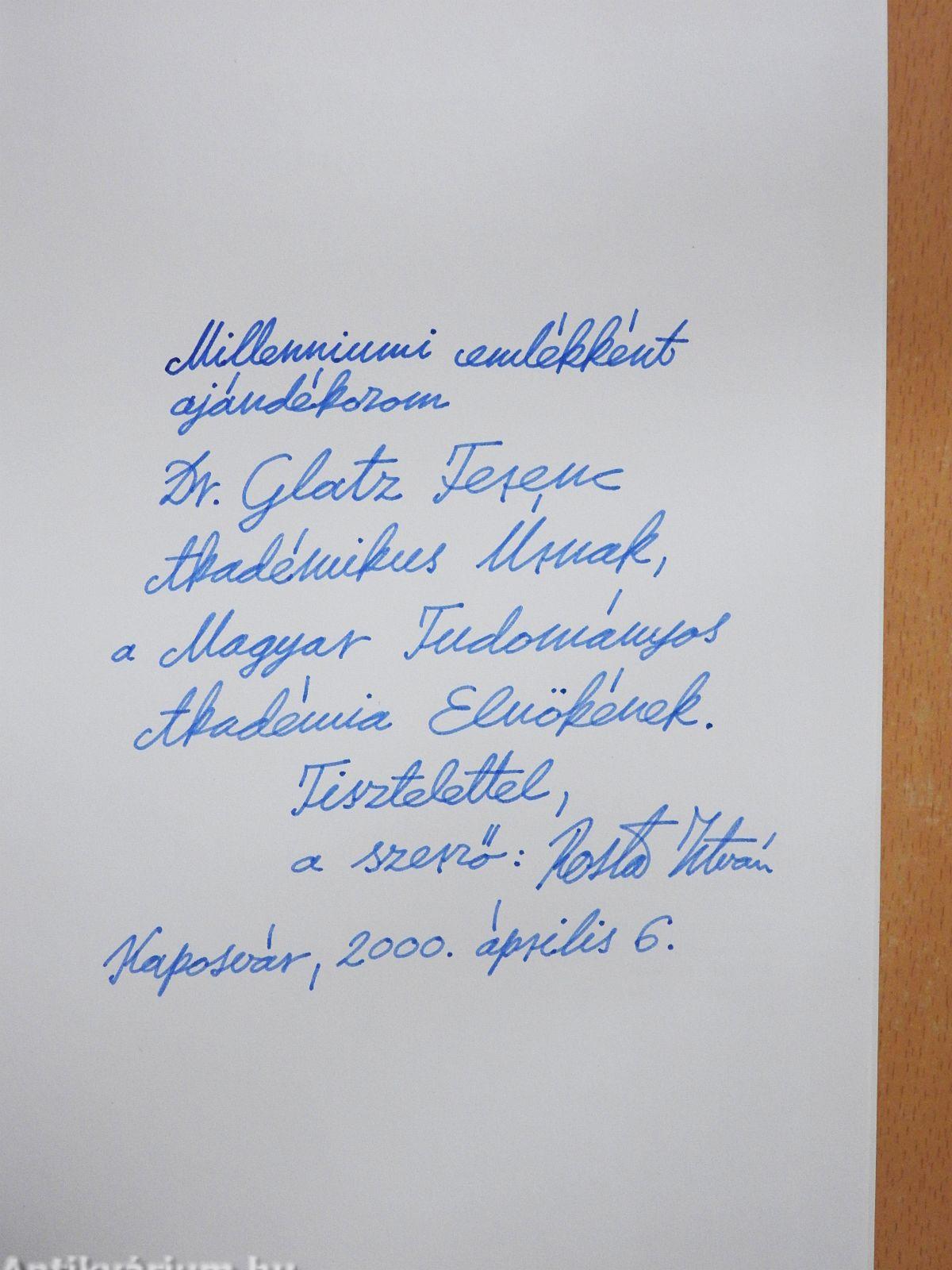Az előzéklapon a szerző, Dr. Rosta István névre szóló dedikációja látható.
