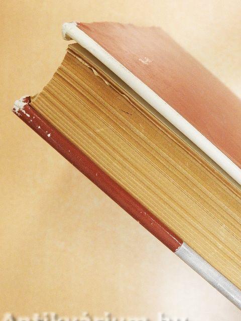 A borító foltos. Több lapon aláhúzások láthatók, a kötés megtört.