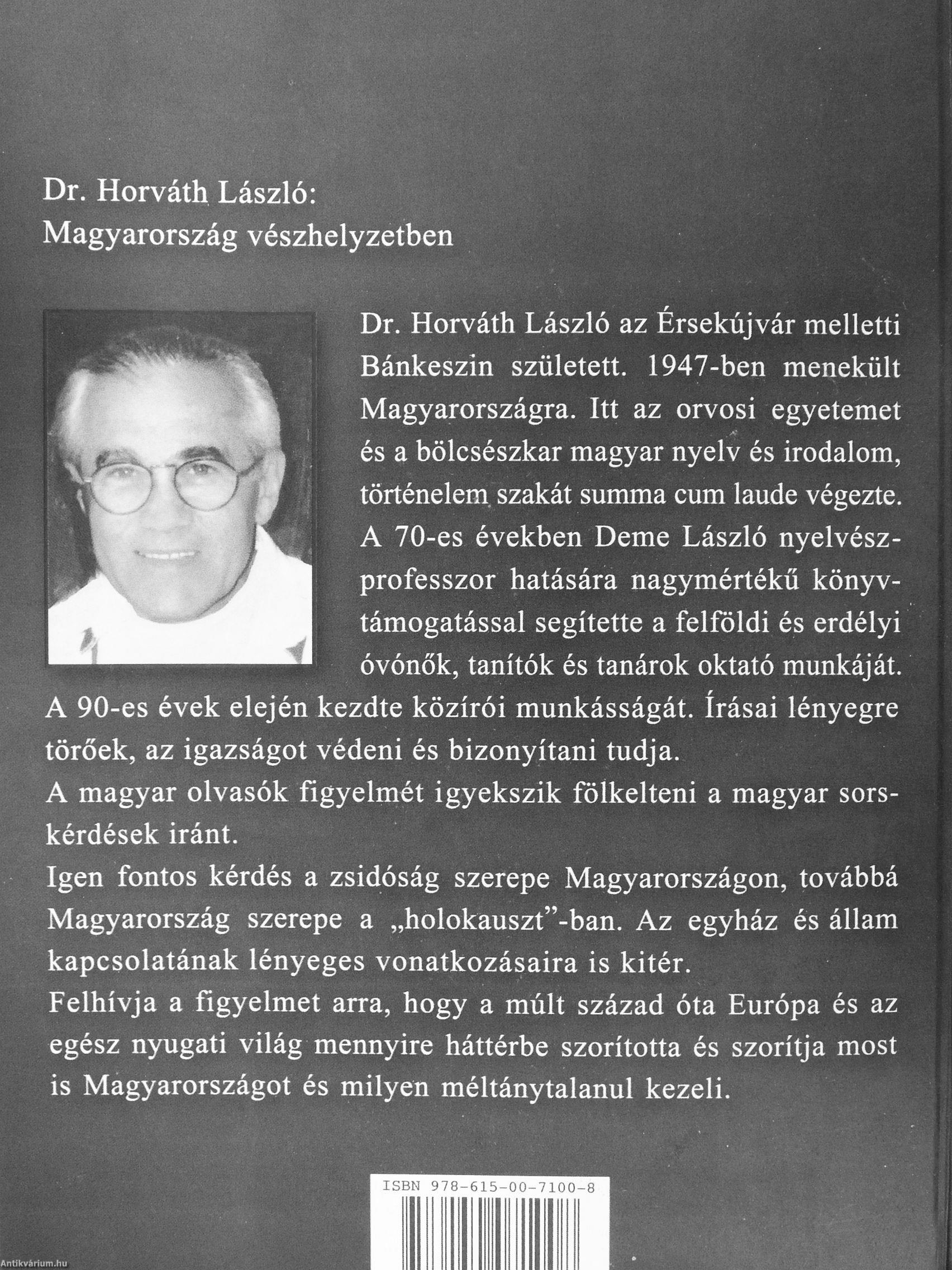 Dr. Horváth László az Érsekújvár melletti Bánkeszin született. 1947-ben menekült / Magyarországra. Itt az orvosi egyetemet