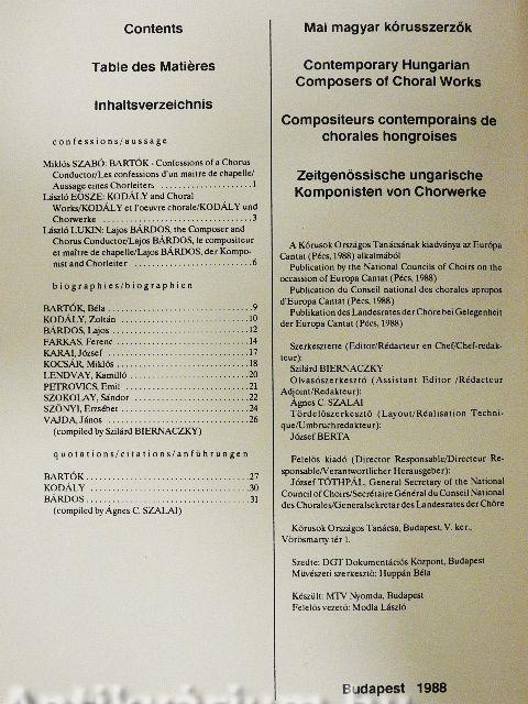 Contemporary Hungarian Composers of Choral Works/Compositeurs contemporains de chorales hongroises/Zeitgenössische ungarische Komponisten von Chorwerke