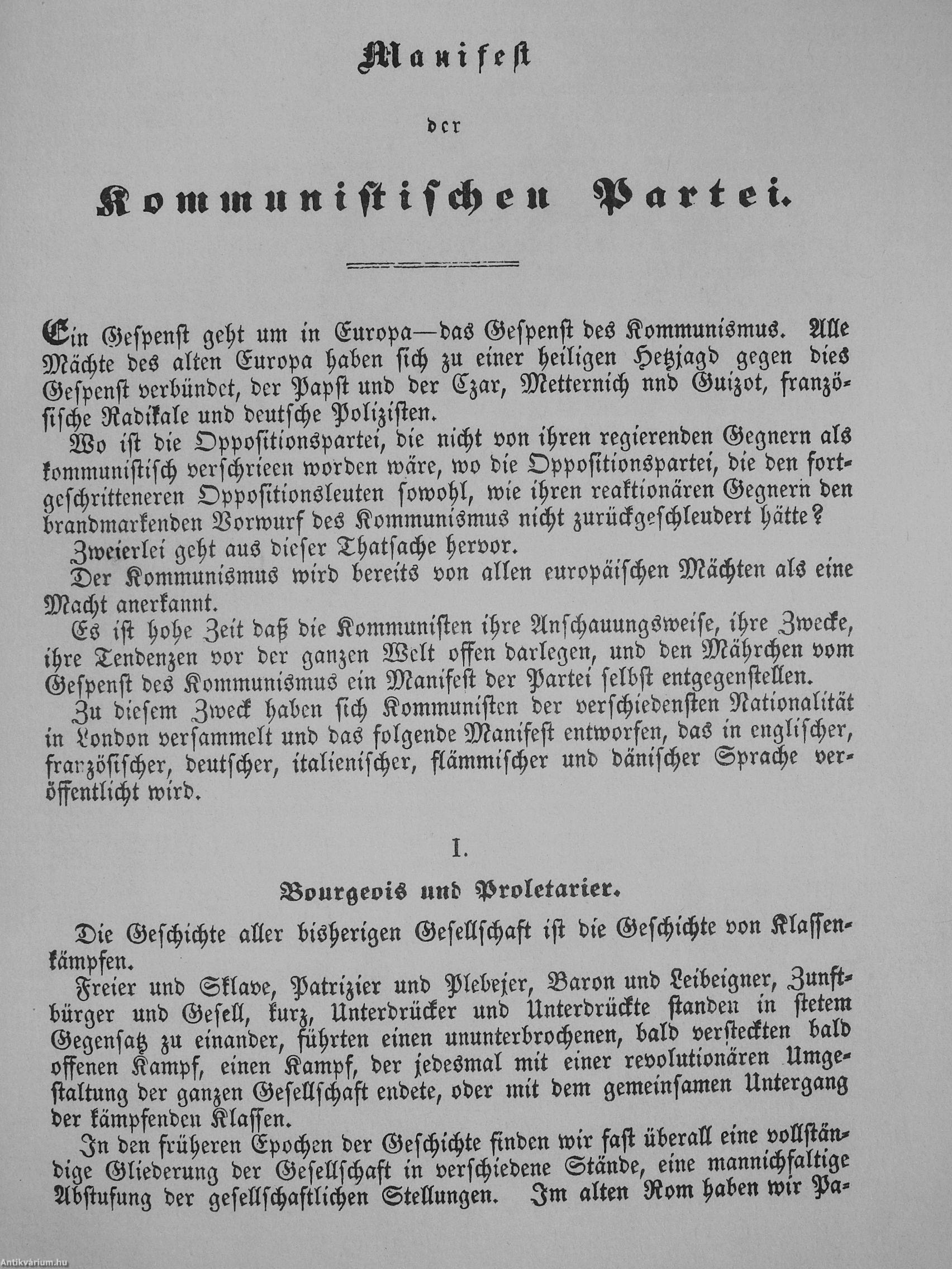 | Megjegyzés: | Gótbetűs reprint kiadás, az eredeti mű Office der "Bildungs-Gesellschaft für Arbeiter", London kiadásában jelent meg 1848-ban. Eredeti védődobozban. |