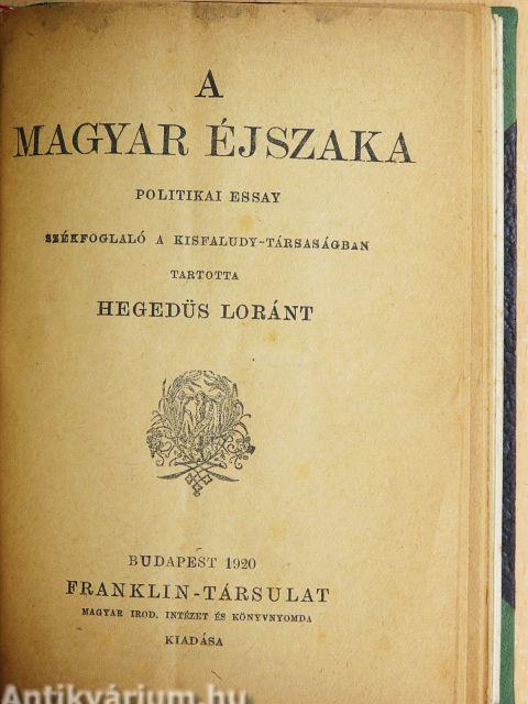 | Megjegyzés: | Öt mű egy kötetben. A művek kiadási évei eltérőek. Nyomtatta a Franklin-Társulat nyomdája. |