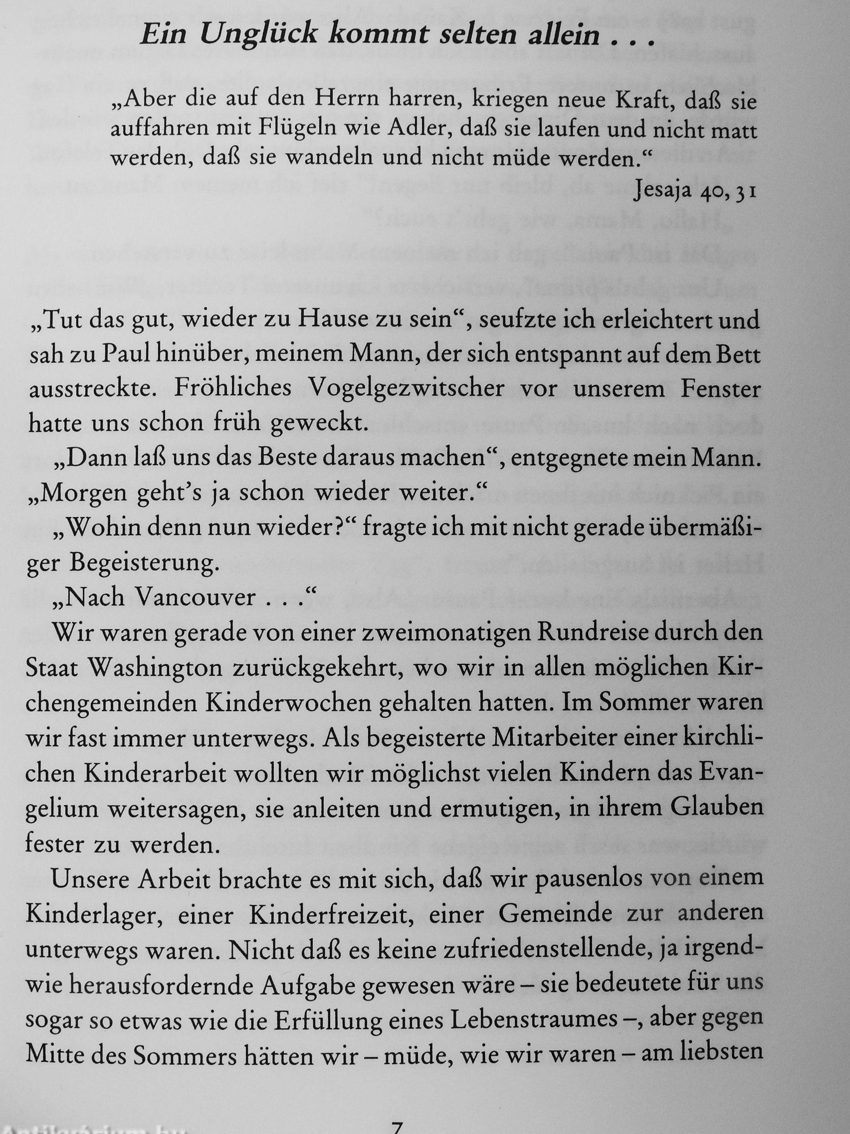 Da antwortete ör: „Mein liebes Kind, ich liebe dich und werde dich nie r allein lassen, erst recht nicht "1 in Nöten und Schwierigkelten.