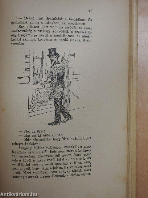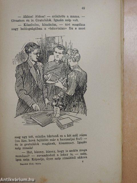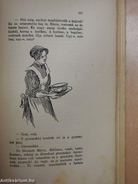 El lehetne tünődni azon sokáig, ugy-e, édes Évikém, hogyan, hol és mikor talált egymásra ez a fecskepár? Hol és mikor csicseregte az apafecske: légy az én párom! Nemcsak e nyáron, de mindörökre! Ugy gondolom, a fecskék párosodására is ráillik az emberekéről szóló mese. Hogy: van odafent, az égben, a jó Istenkének egy fanyelü bicskája, aztán sok-sok millió meg millió mogyorócskája! Fanyelü bicskával mogyorócskákat Istenke szüntelen pattogtatja kétfelé, fél mogyorócskák kavarognak a magas levegőégben, jobbra, balra, szerte-széjjel: azt hinnéd, soha, mig a világ, össze nem találkoznak - s im, hallj csudát, Évike, lent a földön összetalálkoznak az égből egyszerre indult mogyorócskák, szépen összesimulnak, ugy összesimulnak, hogy csak a halál választja el őket...
