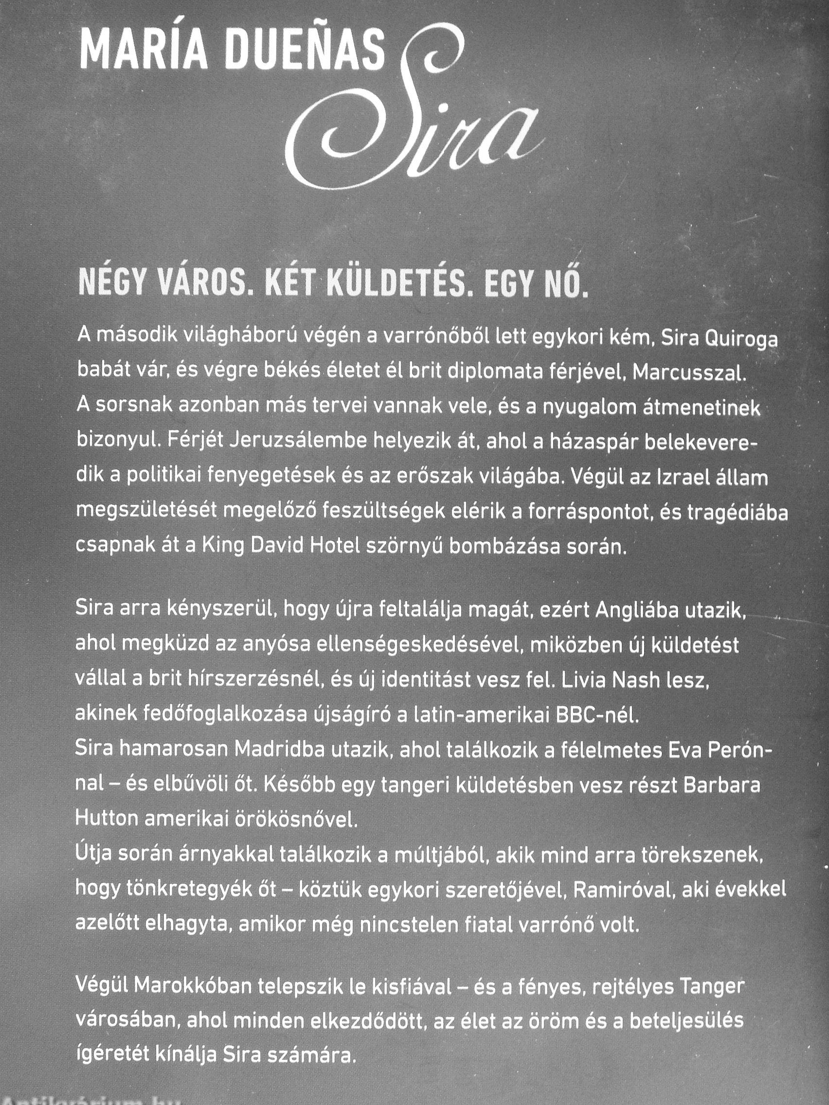 Sira arra kényszerül, hogy újra feltalálja magát, ezért Angliába utazik, _ ahol megküzd az anyósa ellenségeskedésével, miközben új küldetést vállal a brit hírszerzésnél, és új identitást vesz fel. Livia Nash lesz, akinek fedöfoglalkozása újságíró a latin-amerikai BBC-nél. Sira hamarosan Madridba utazik, ahol találkozik a félelmetes Eva Perónnal - és elbűvöli őt. Később egy tangeri küldetésben vesz részt Barbara Hutton amerikai örökösnővel.