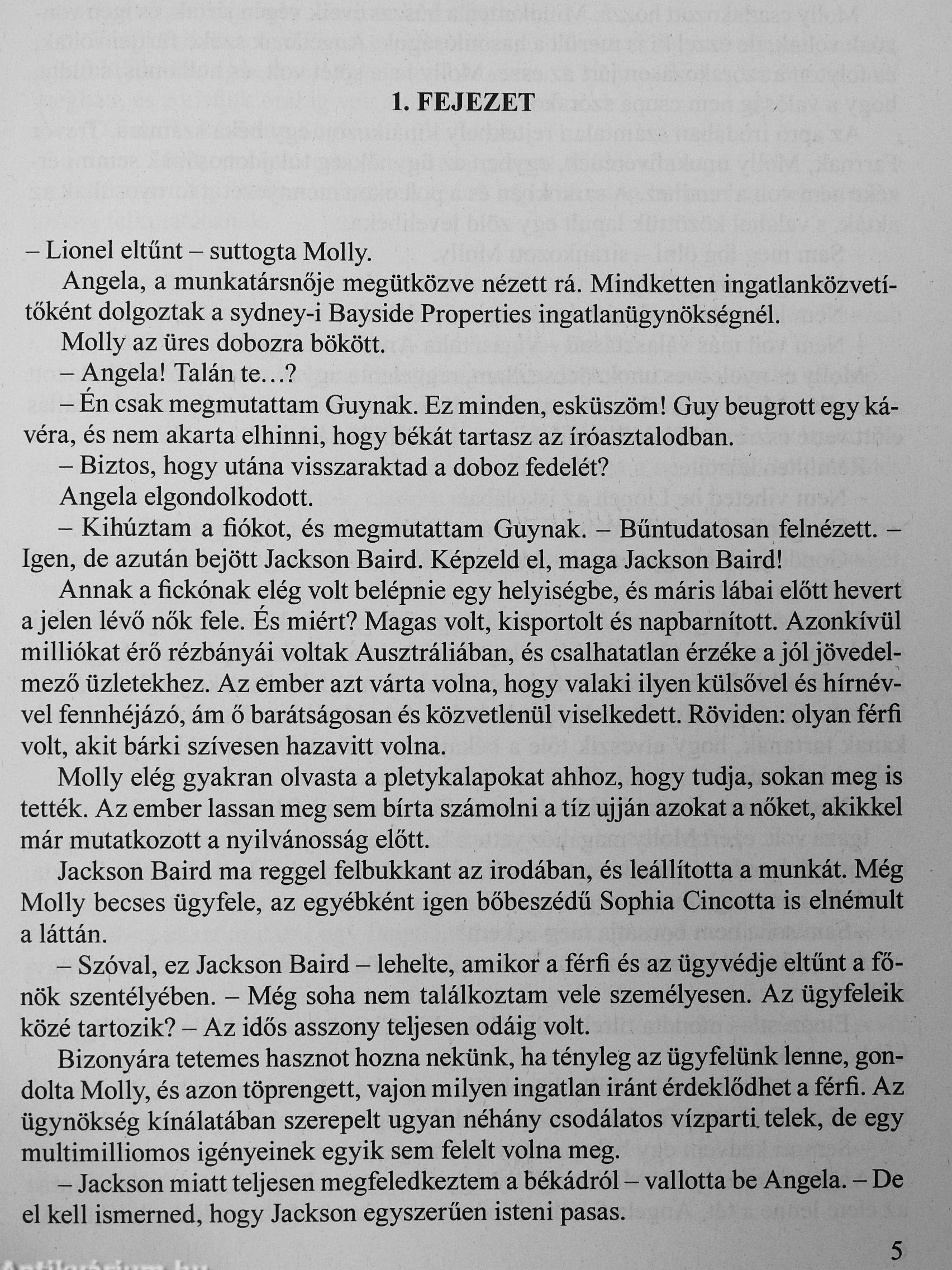 Jackson Baird igen elfoglalt, ezért ragaszkodik hozzá, hogy még a hétvégén megnézhessen egy kiszemelt birtokot. Molly Farr ingatlanügynöknek nincs más választása, vele tart, és mire visszatérnek Sydney-be, már fülig szerelmes a milliomosba