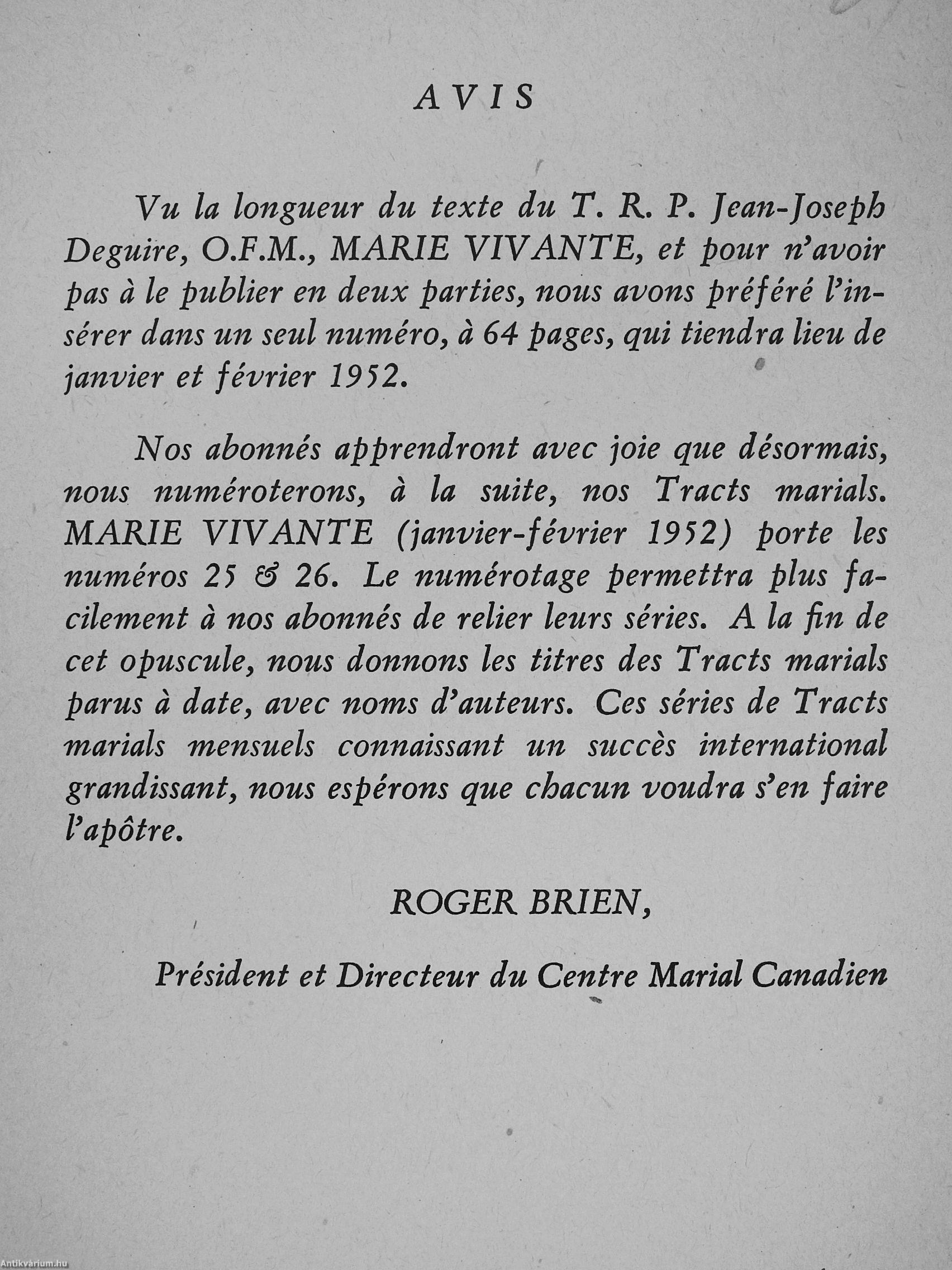 Marie Vivante Janvier-Fevrier 1952 Marie Vivante Janvier-Fevrier 1952